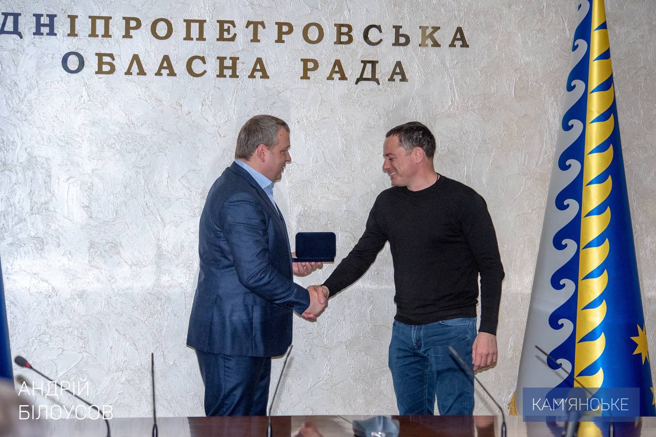 Міський голова Кам’янського Андрій Білоусов отримав відзнаку голови обласної ради від Миколи Лукашука