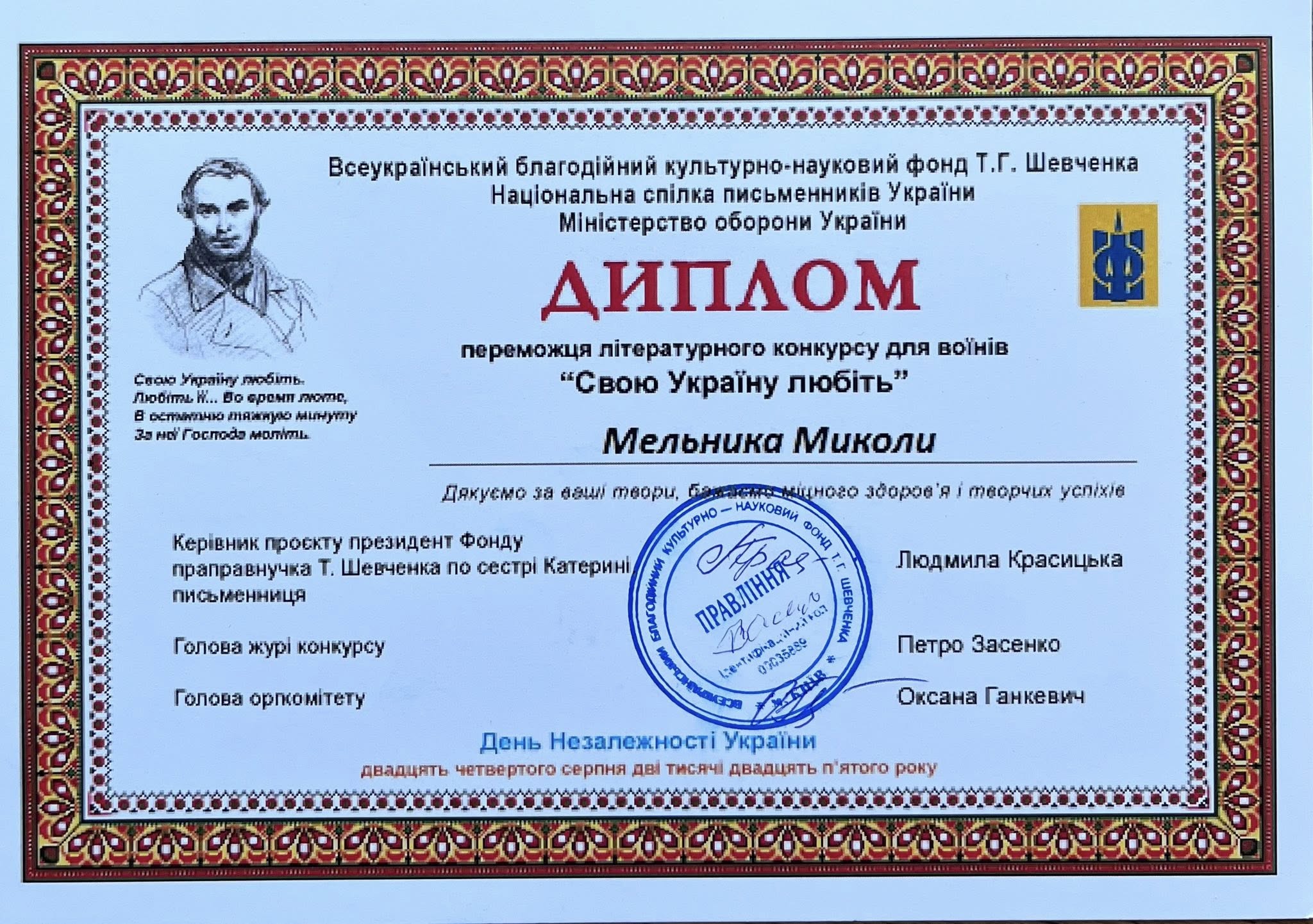 — Як наважились надіслати свій вірш на літературний конкурс "Свою Україну любіть"?