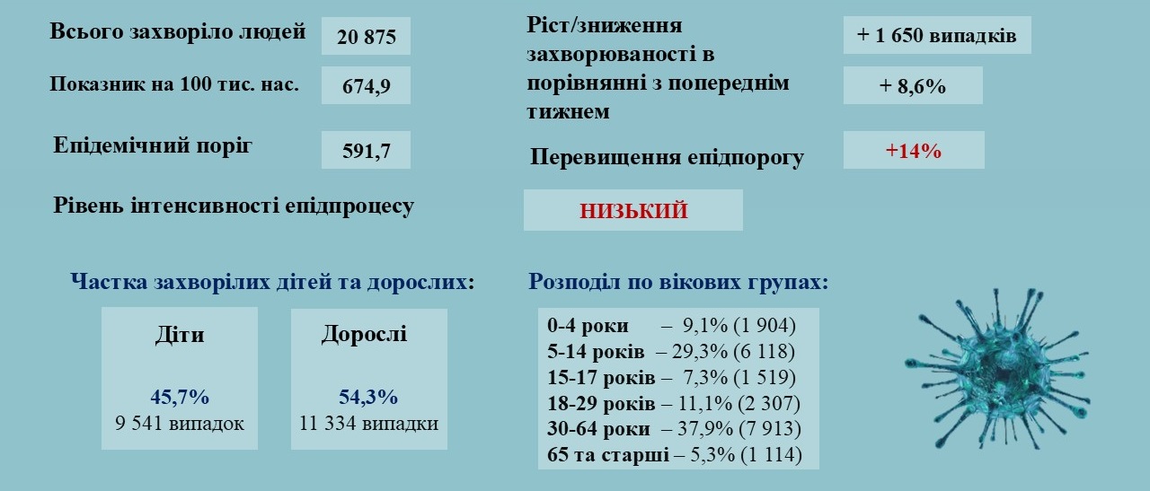 Минулого тижня на Дніпропетровщині на ГРВІ захворіло майже 21 тисяча людей (інфографіка)