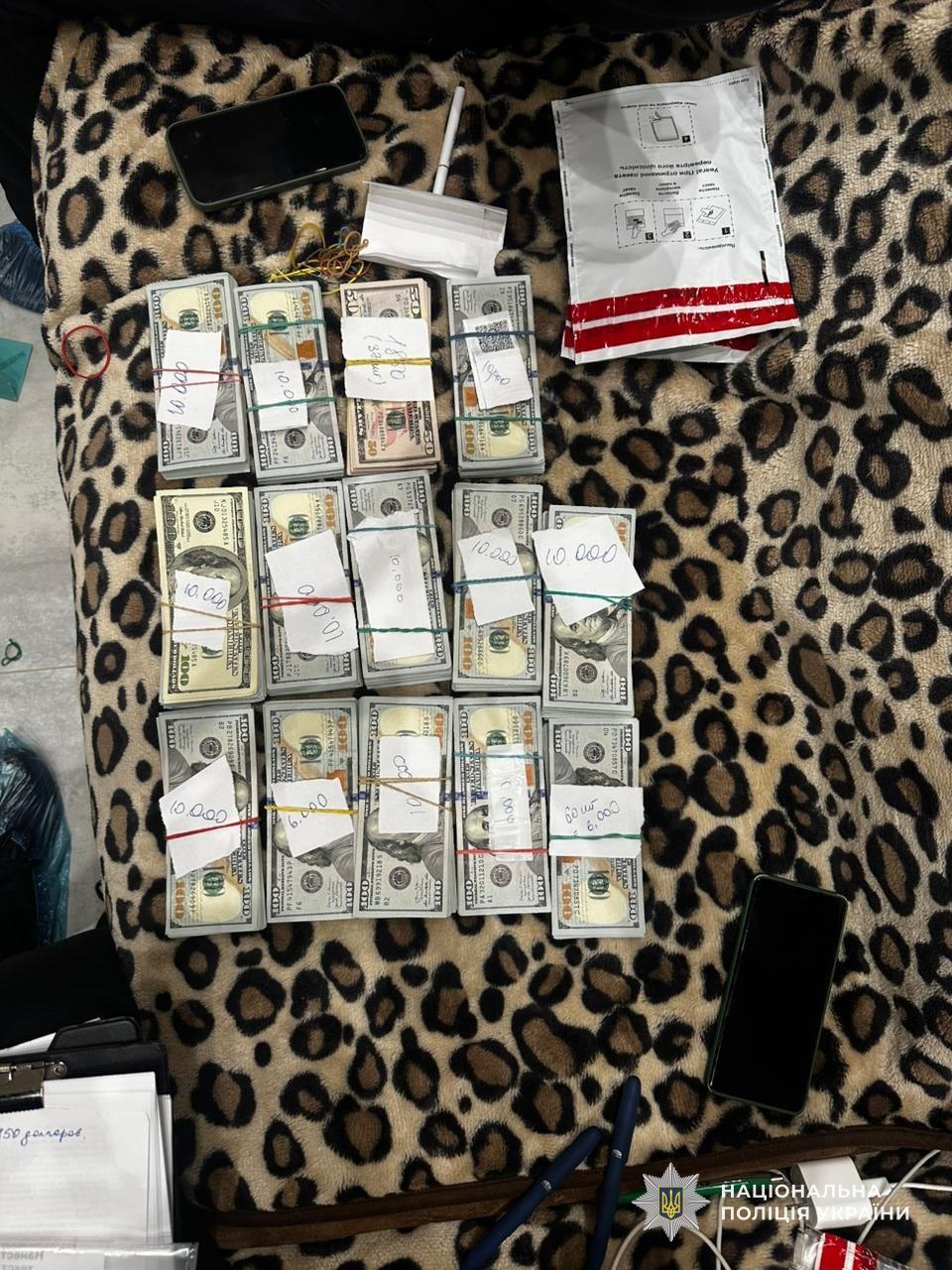 У ході слідчих дій вилучили: готівку: понад 121 тисяча гривень та 116 тисяч доларів США, мобільні телефони, комп’ютерну техніку та чорнові записи, два револьвери та патрони з гумовими кулями, а також відеореєстратор, інші речові докази, що мають значення для справи.