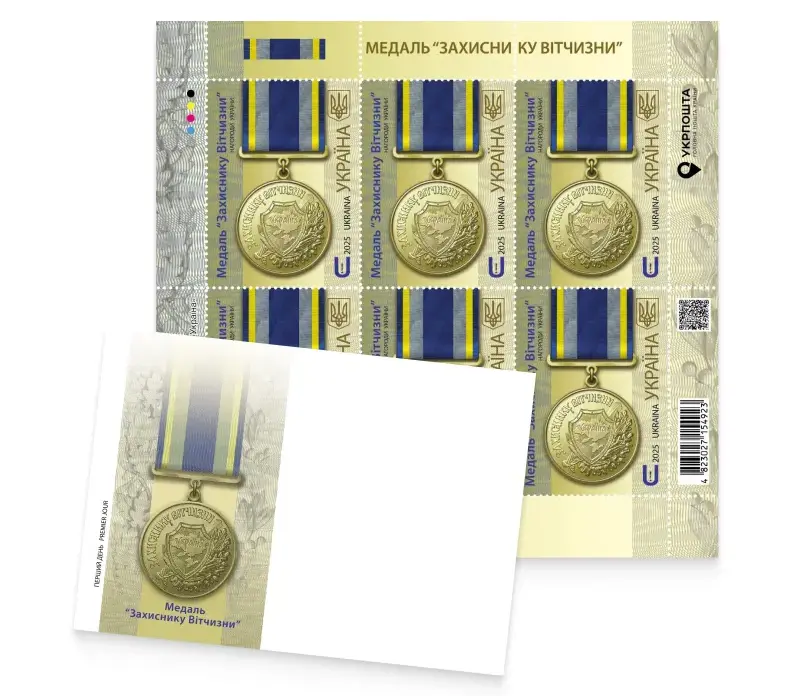 Поштова марка "Медаль “Захиснику Вітчизни”" продовжує серію "Нагороди України", започатковану Укрпоштою у 1997 році. Медаль заснована 8 жовтня 1999 р. як президентська відзнака з нагоди 55-ї річниці визволення України від фашистських загарбників. Нагородою відзначаються ветерани війни, інші особи за виявлені у захисті державних інтересів особисті мужність і відвагу, зміцнення обороноздатності та безпеки України. Нагородження медаллю "Захиснику Вітчизни" може здійснюватися посмертно. У такому разі нагороду вручають членам сім’ї. Загалом цією медаллю під час повномасштабного вторгнення 2022–2025 років було нагороджено понад 10 000 наших героїв.