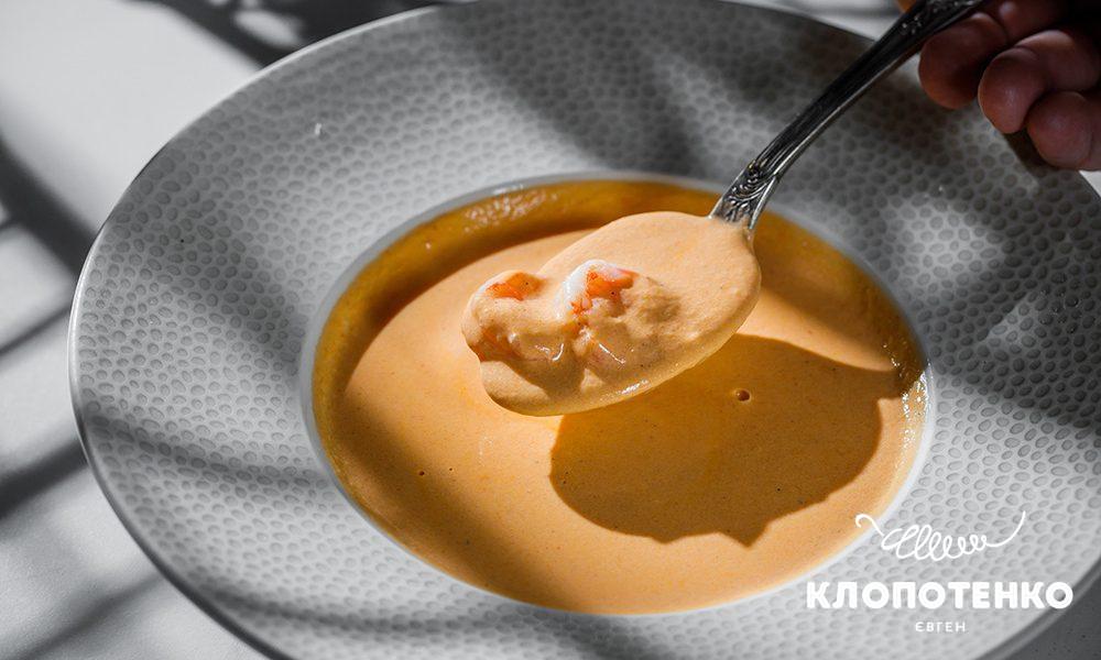 - Розтопіть у сотейнику масло. Додайте голи та панцирі креветок і смажте на середньому вогні 3–4 хвилини до появи інтенсивного аромату.