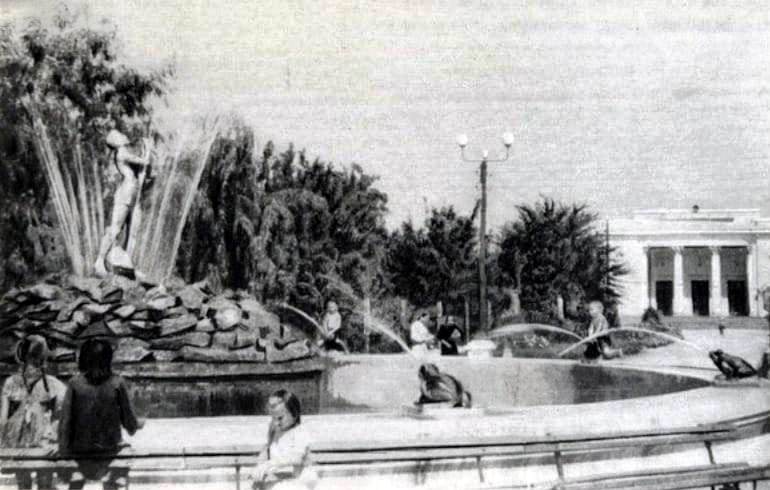 Відомий каскад фонтанів на центральному проспекті з’явився у ході масштабної реконструкції скверу 1976 року, проведеної з нагоди встановлення бюста Леоніда Брежнєва. Фото – з того-таки альбома міста 1981 року: