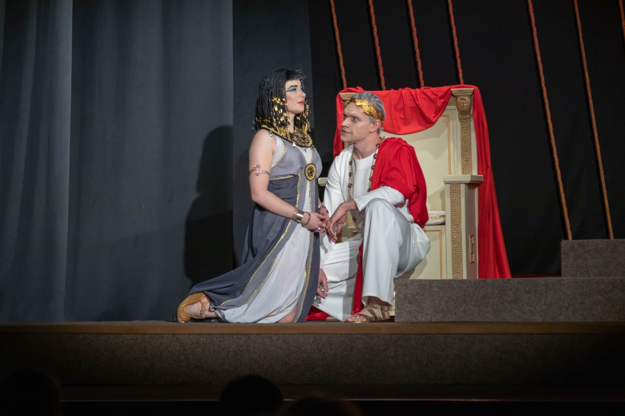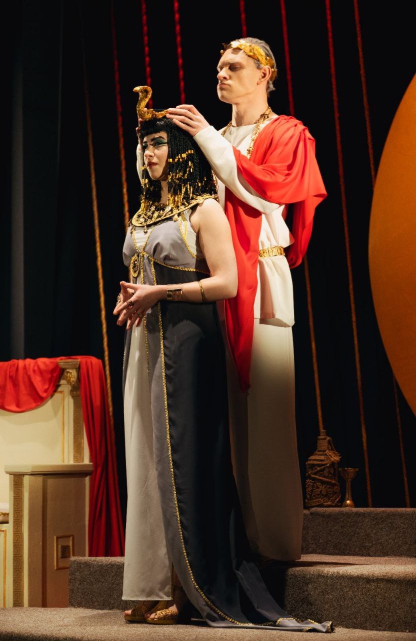 Герої вистави "Кохання Клеопатри" – історичні постаті: Клеопатра, Гай Юлій Цезар та Марк Антоній. Усі троє прославилися у віках не тільки своєю політичною діяльністю, але й заплутаними любовними стосунками, які були нерозривно пов’язані з боротьбою за владу. Чому надасть перевагу цариця Клеопатра – коханню чи владі? І чи можливо зробити правильний вибір між цими всесильними стихіями?