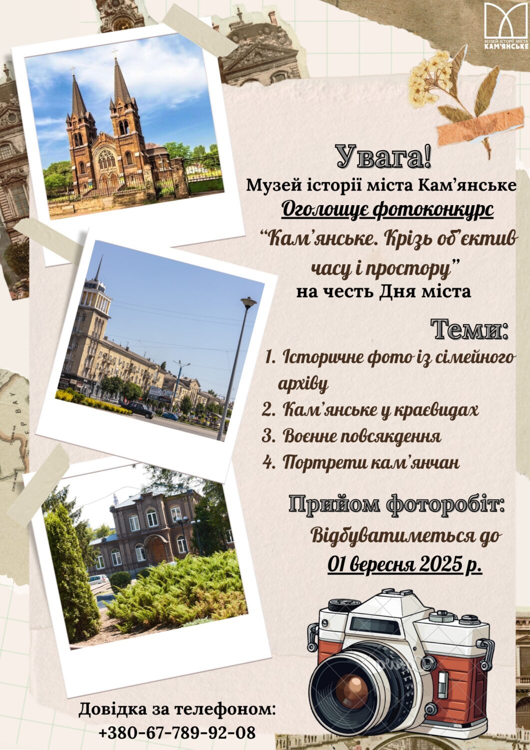 Музей історії міста Кам’янське запрошує кам’янчан до участі у фотоконкурсі "Кам’янське. Крізь об’єктив часу і простору", який проводиться у рамках святкування Дня міста.