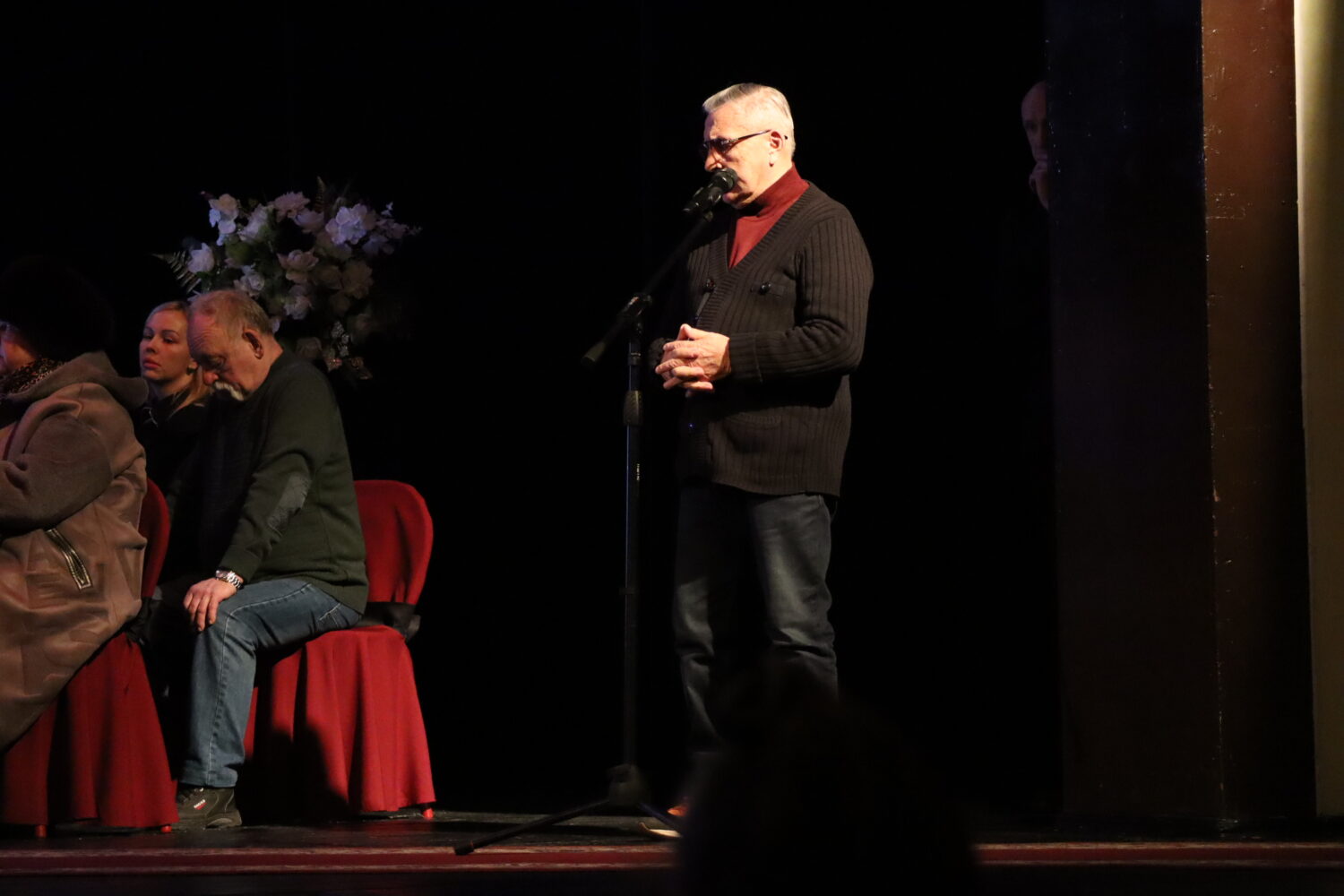 Сьогодні ми проводжаємо нашого колегу, який йде у вічність… Так, він був заслуженим артистом, але насправді він був народним артистом. Його любила публіка. А це найщиріша любов. Його любили ми, його колеги. Його любили молоді актори, які хотіли б грати, так само як грав він. Він дуже багато зробив у нашому театрі. А якщо врахувати, що він працював у театрі з перших днів його заснування, то його по праву вважали тією основою, на якій тримається театр… Він був веселою людиною, він любив життя, але найголовніше – він був прекрасним артистом. Його місце ніколи не буде зайнято, тому що такі артисти народжуються досить рідко. Він міг грати все. І це давало право йому бути першою особою в театрі, – зазначив головний режисер театру, заслужений діяч мистецтв України Сергій Чулков.