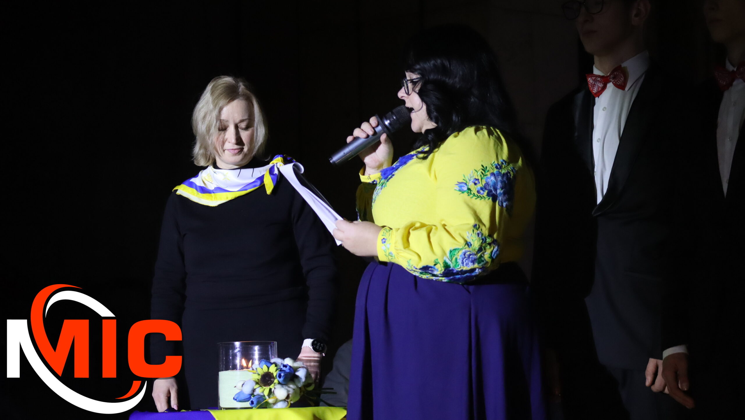 Розпочався захід із офіційної частини. Перед присутніми виступила секретар Кам’янської міської ради Наталія Ктітарова. Вона привітала громаду та передала вітання від міського голови Кам’янського Андрія Білоусова. Надзвичайно зворушливим моментом став вихід на сцену ветеранів війни, волонтерів та громадських діячів. Вони урочисто винесли великий прапор України, після чого безпосередньо на сцені було запалено символічну свічу пам’яті.