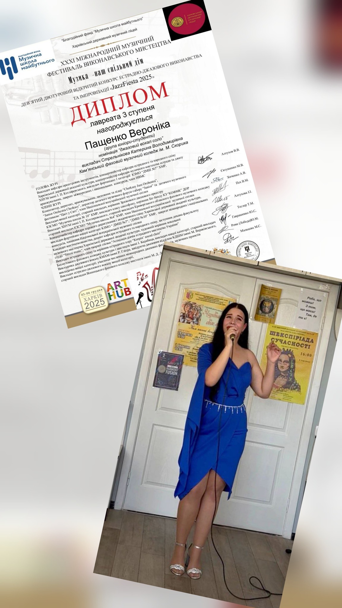 Дипломом 3 ступеня в номінації "джазовий вокал" відзначена Вероніка Пащенко (клас викладача Катерини Стрельнікової).
