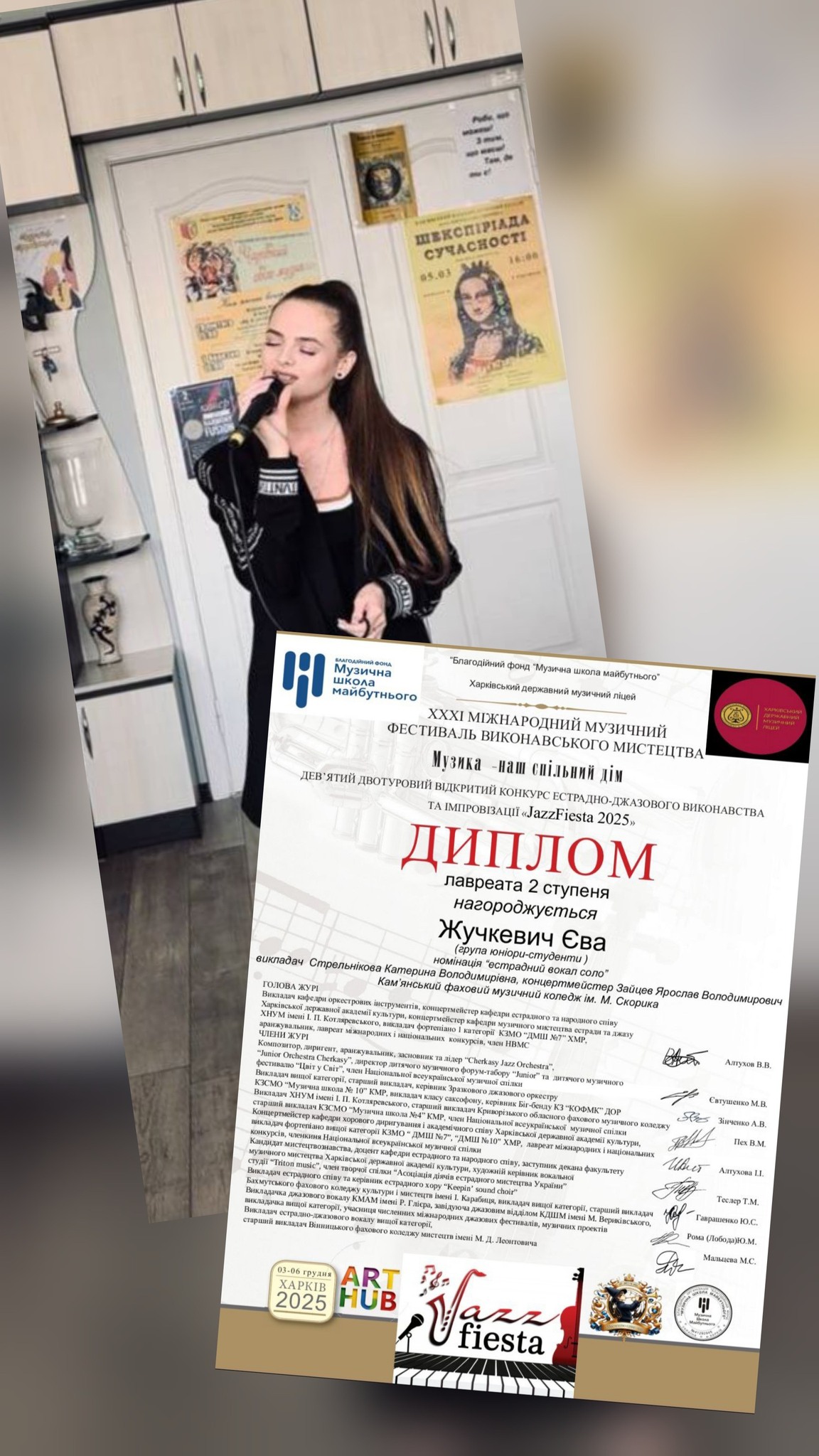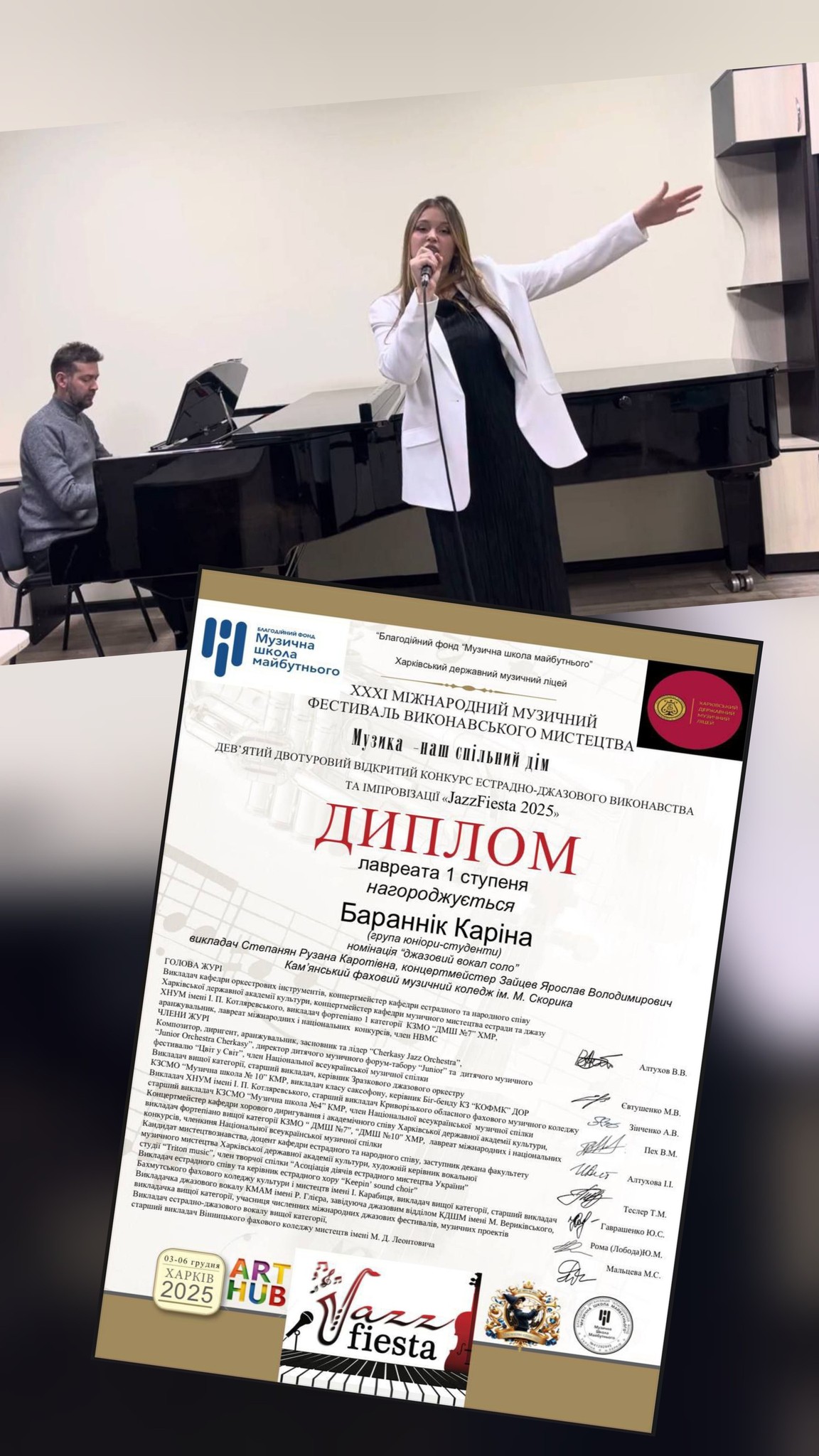 На початку грудня в Харкові відбувся щорічний IX відкритий конкурс естрадно-джазового виконавства та імпровізації "JazzFiesta-2025", лауреатами якого стали студенти циклової комісії "Спів" Кам’янського фахового музичного коледжу імені Мирослава Скорика.