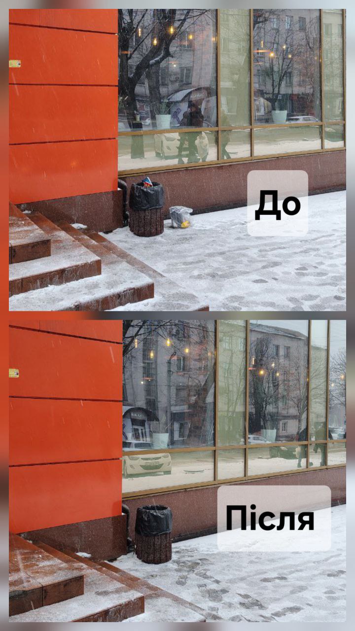 "Шановні підприємці! Нагадуємо вам, що інспекції проводяться щотижнево. Наполегливо просимо вас регулярно та своєчасно здійснювати прибирання снігу, слідкувати за цілісністю вхідних груп, прибирати сміття в переповнених урнах, дотримуватись санітарних норм на територіях, прилеглих до об’єктів підприємницької діяльності, забезпечувати посипання тротуарів від льоду та не чекати на приїзд інспекторів", — зазначили в КП "Благоустрій".