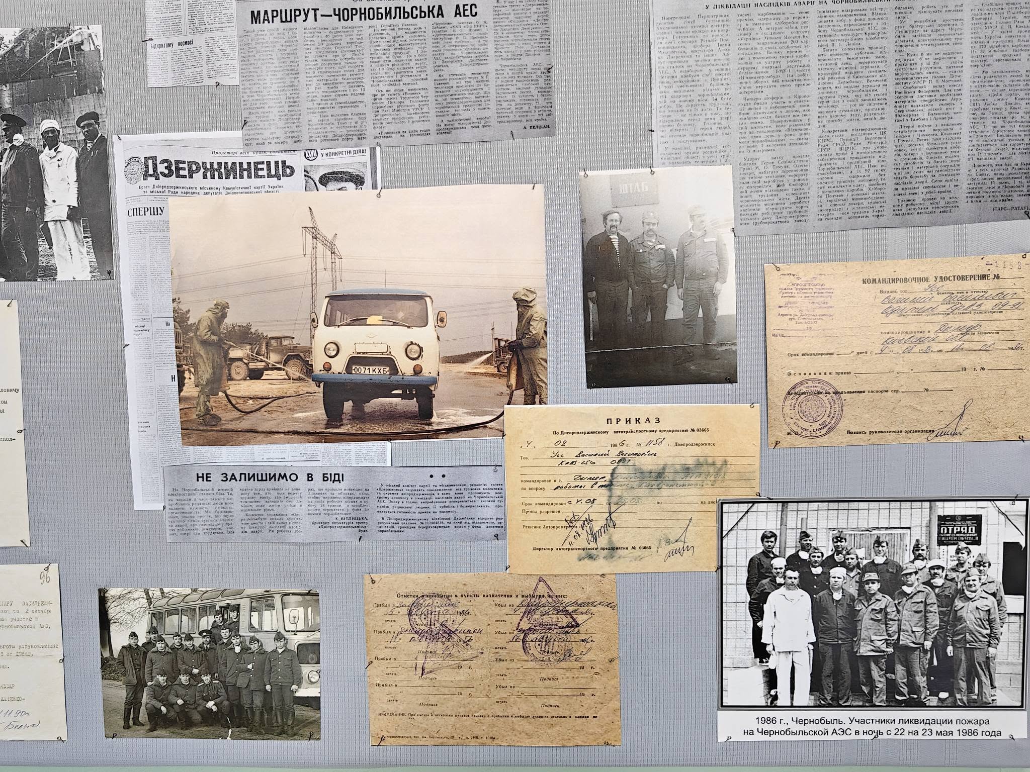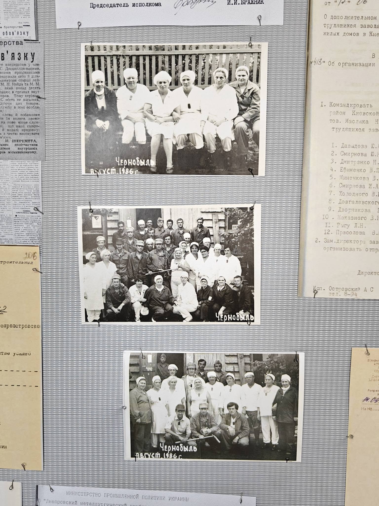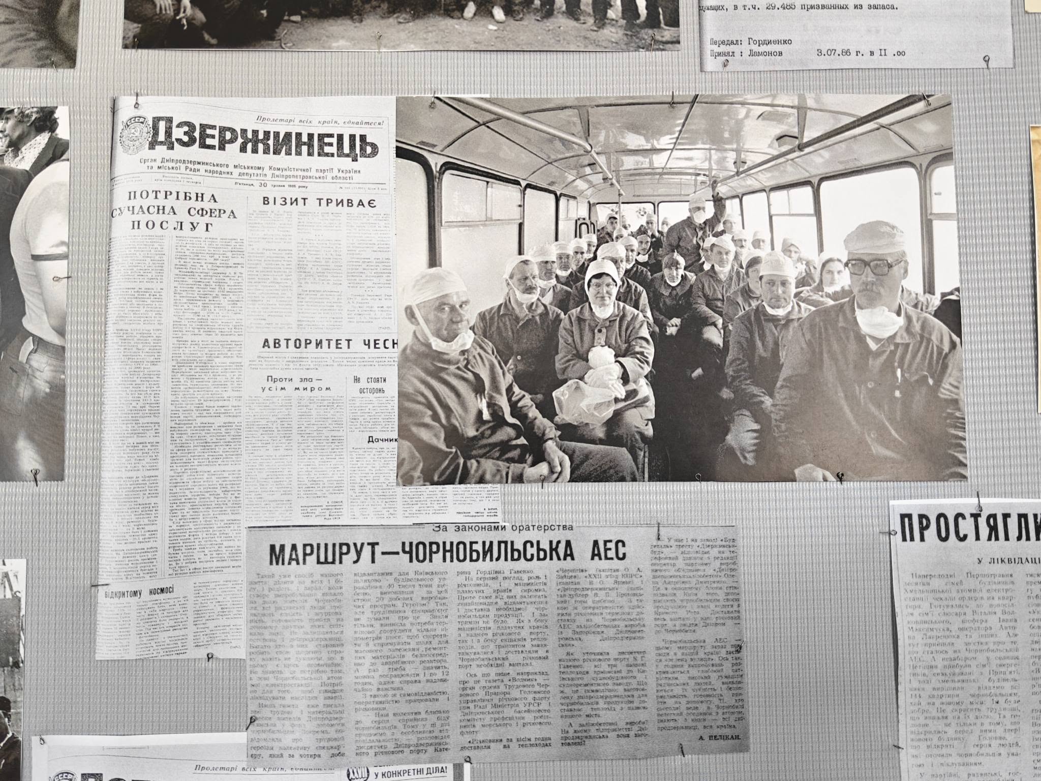 • копії газетних шпальт, що фіксували хронологію подій квітня 1986 року;