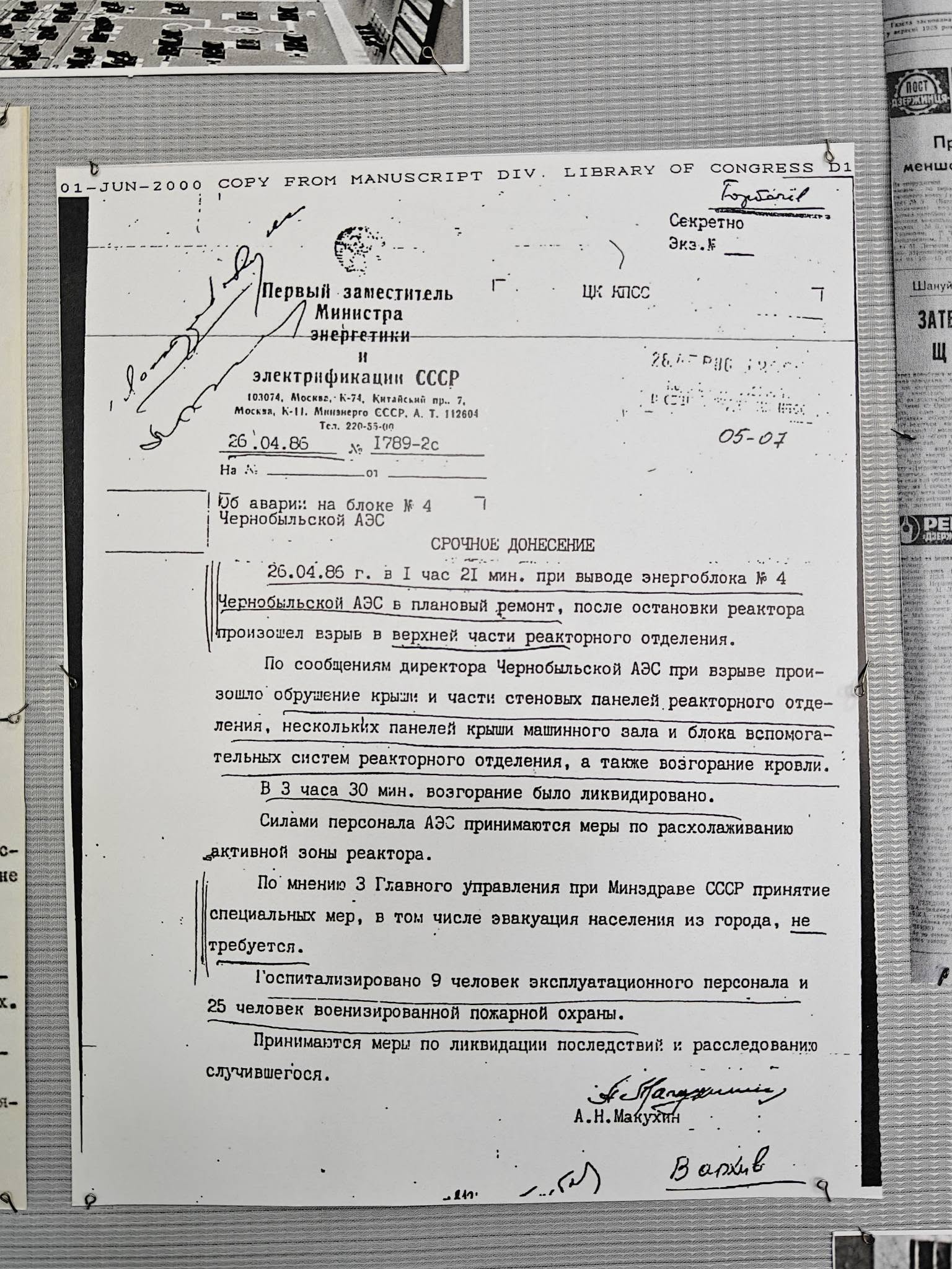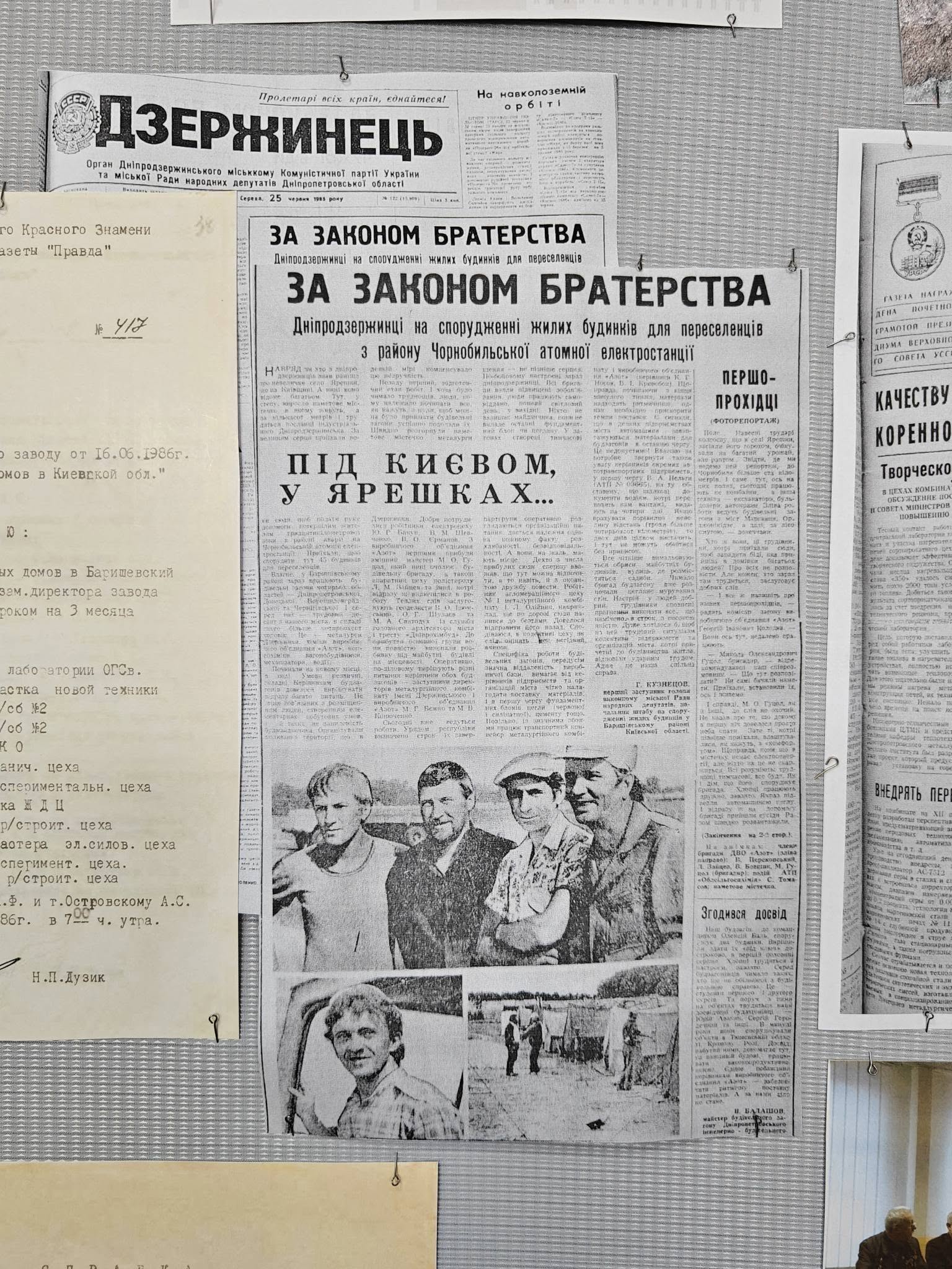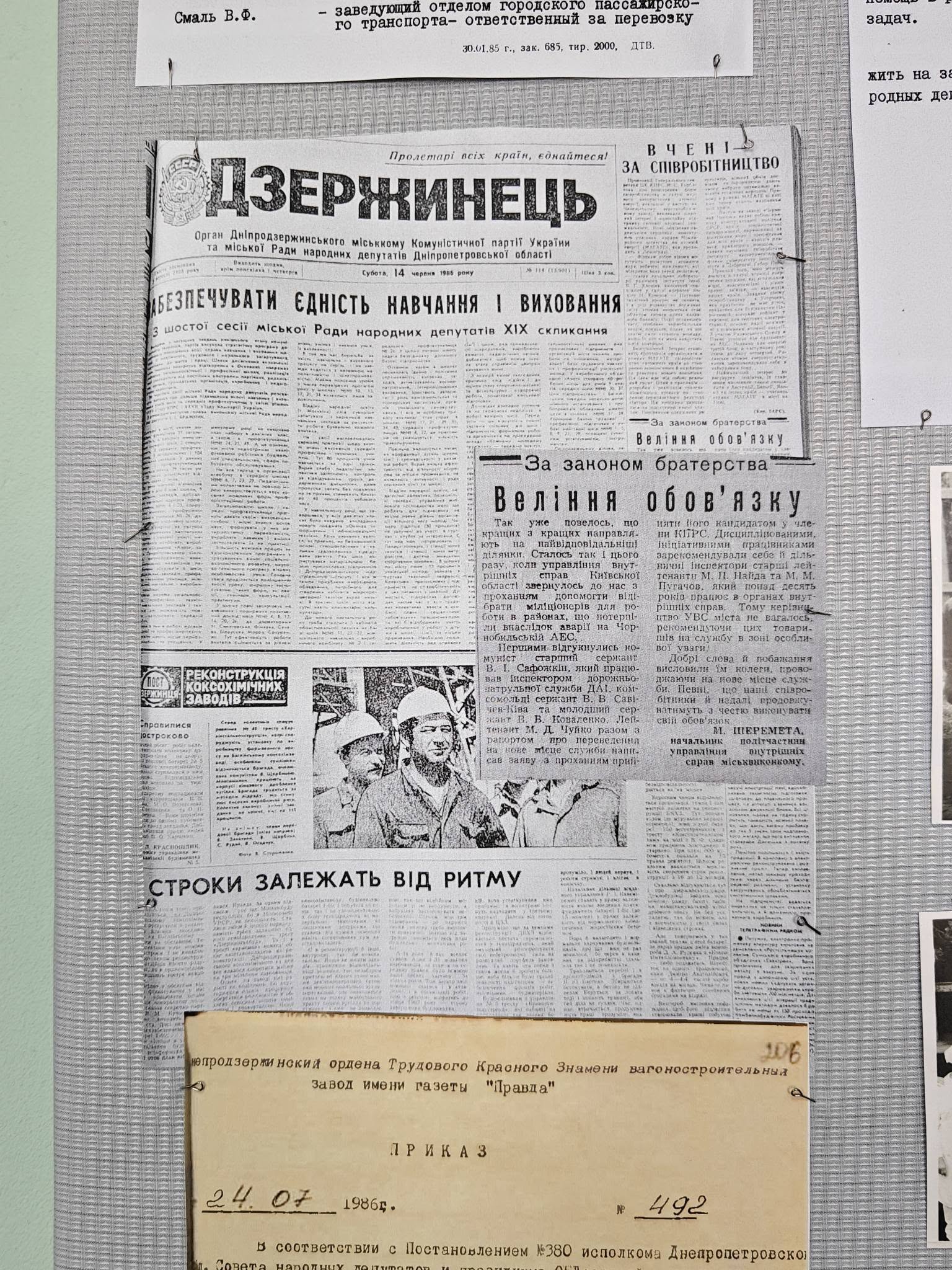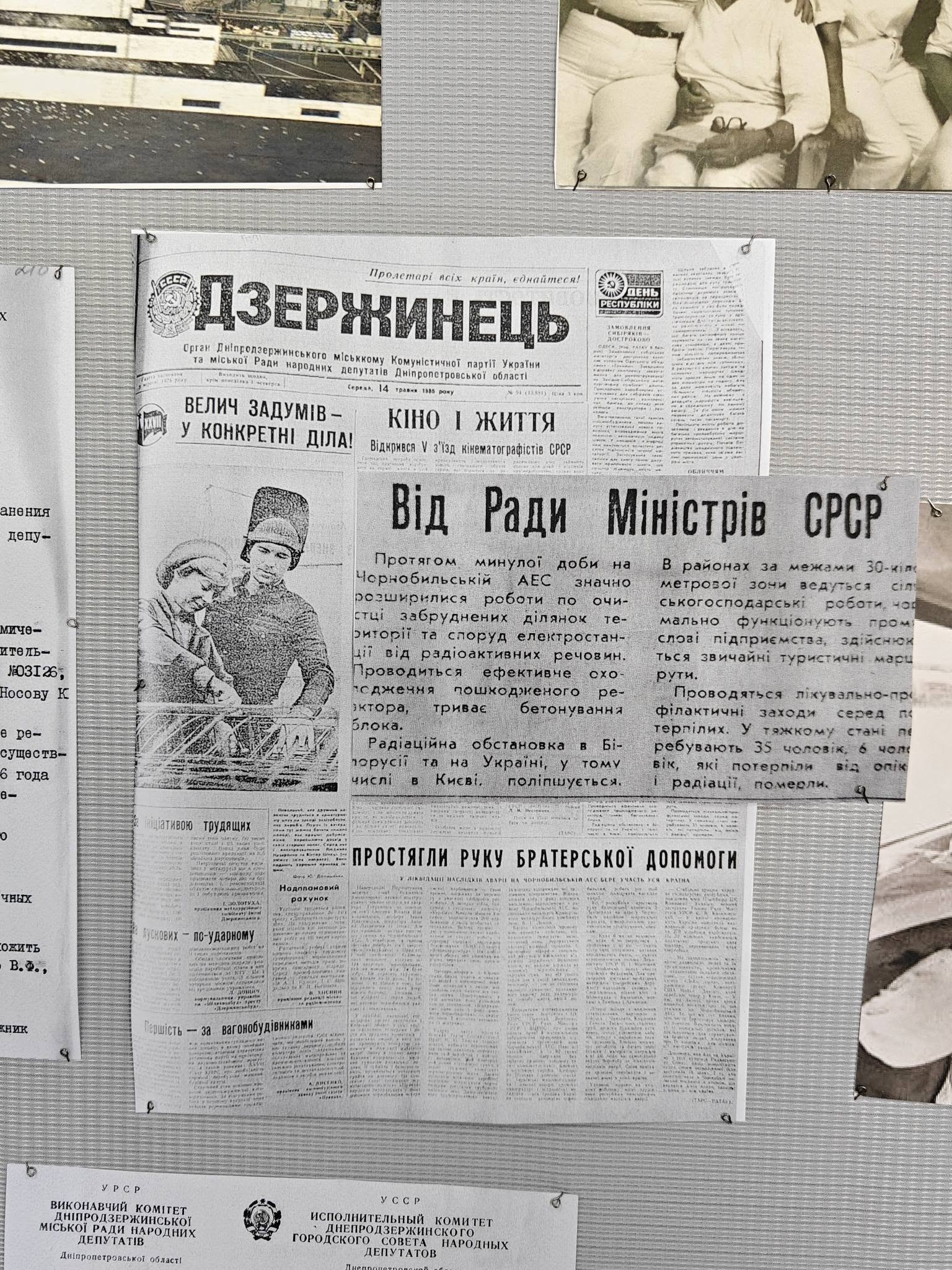 • копії газетних шпальт, що фіксували хронологію подій квітня 1986 року;