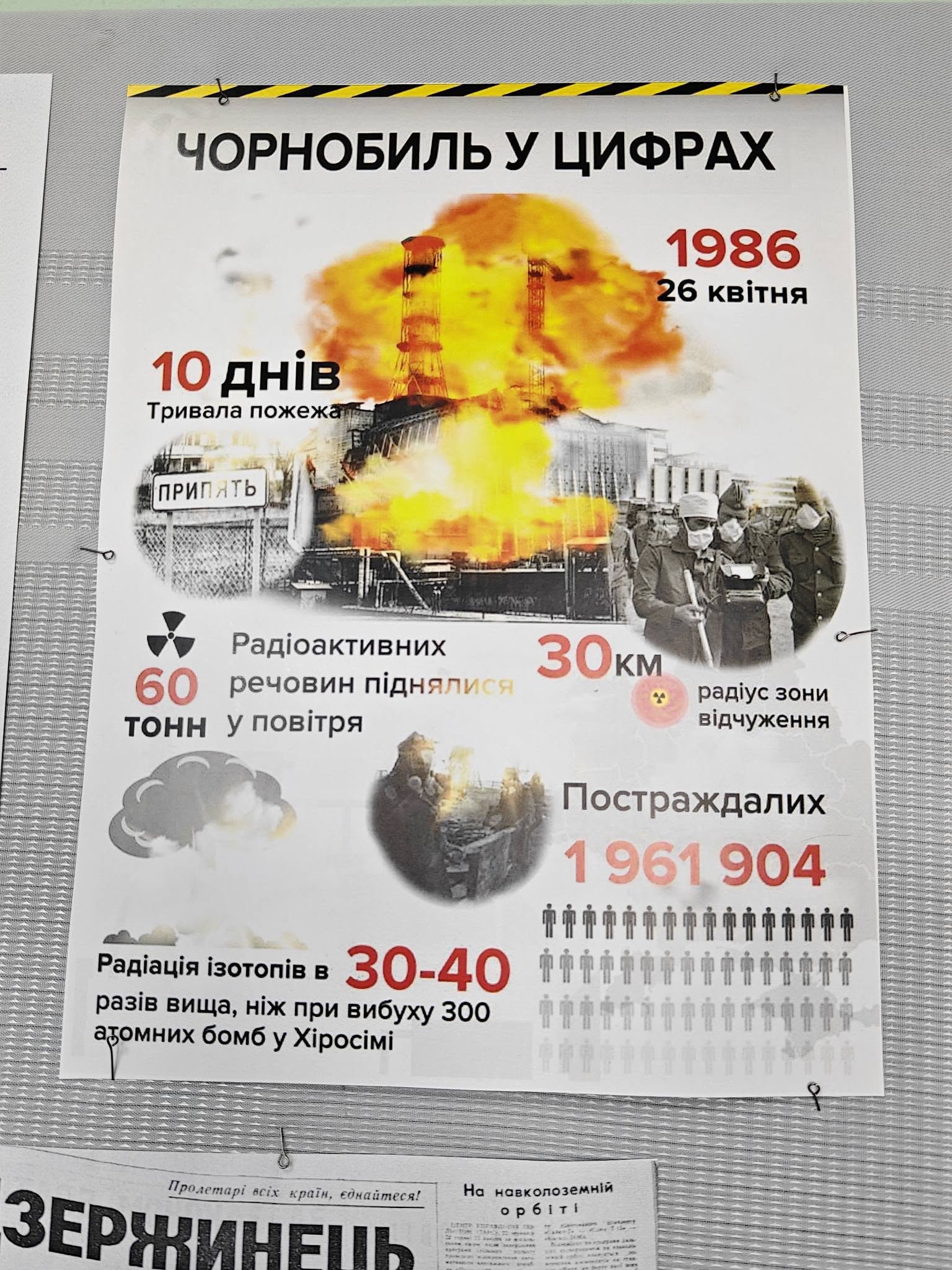 Аварія на четвертому енергоблоці ЧАЕС, що сталася 26 квітня 1986 року, залишила незагоєну рану на тілі України та всієї планети. Масштаби катастрофи вражають і через чотири десятиліття. Зокрема сумарна доза радіації, що потрапила в атмосферу, в 400 разів перевищила потужність вибуху атомної бомби, скинутої на Хіросіму. Ппонад 2 200 населених пунктів в Україні та Білорусі було забруднено, а понад 115 тисяч людей назавжди залишили свої домівки під час першої хвилі евакуації. У ліквідації наслідків аварії взяли участь понад 600 тисяч осіб. Серед них були тисячі мешканців нашого міста — пожежники, медики, військові та інженери, які ціною власного здоров’я та життя зупинили розповсюдження радіації.