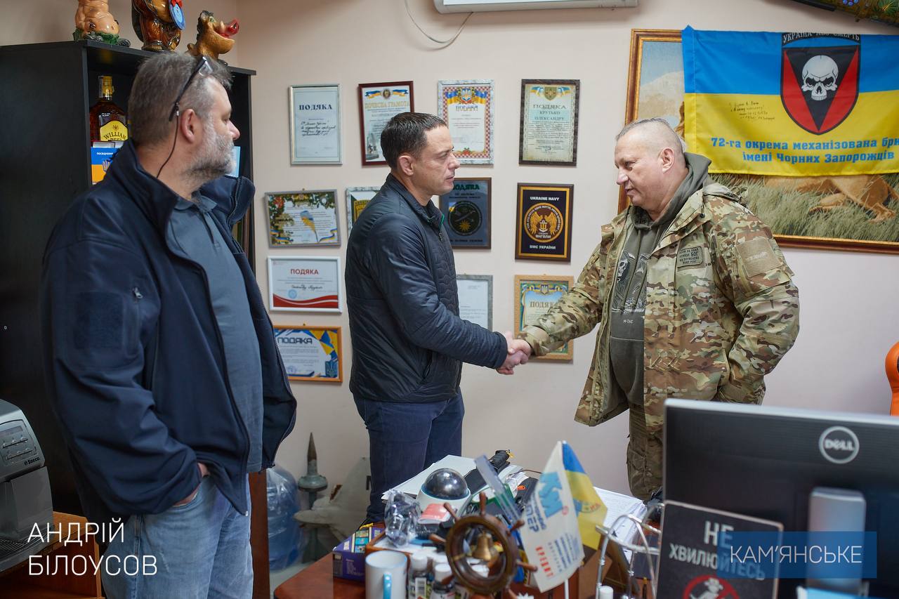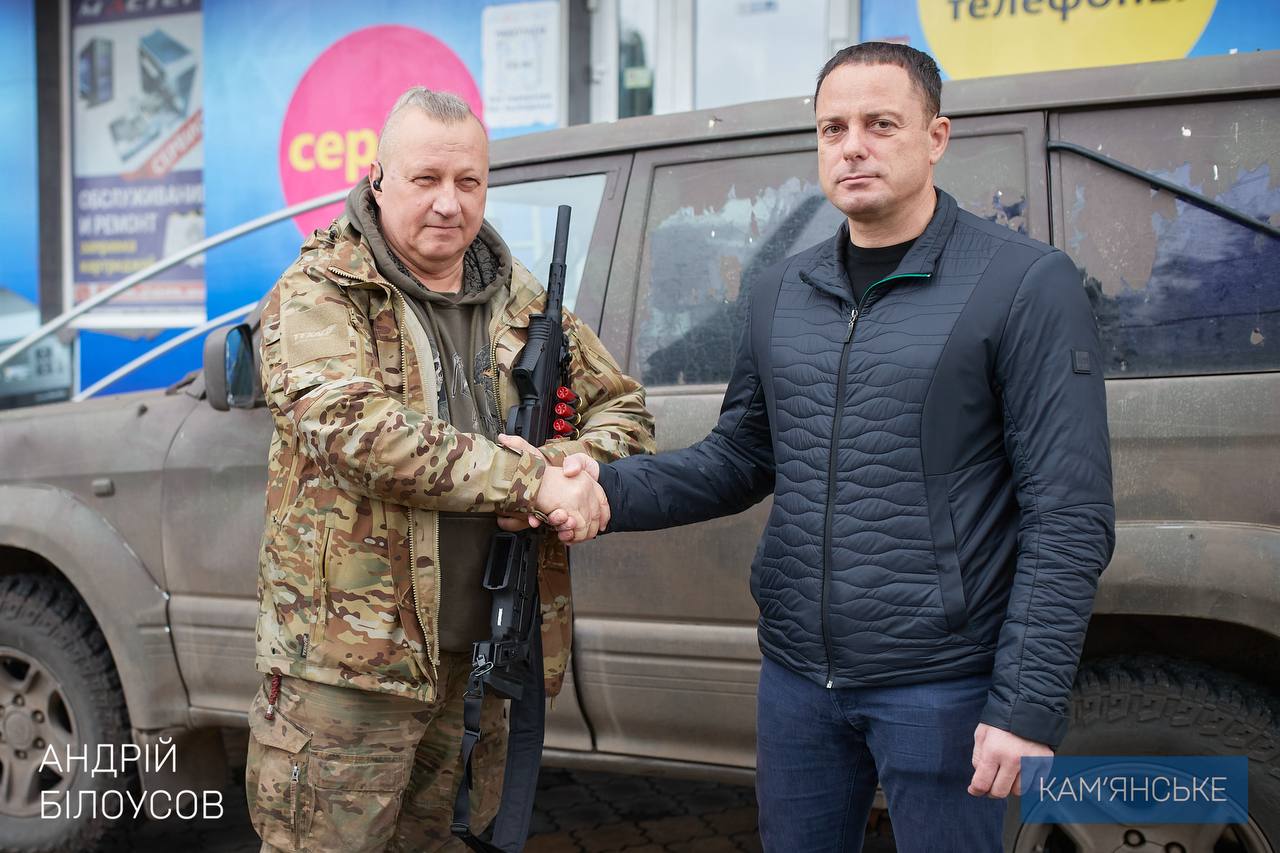 Міський голова Кам’янського Андрій Білоусов спільно з керівником благодійного фонду "Осоння України" Олександром Крутьком передали важливу допомогу земляку — начальнику медичної служби 98-го батальйону 108-ї окремої бригади територіальної оборони Олександру Нестеренку, відомому за позивним "Док".