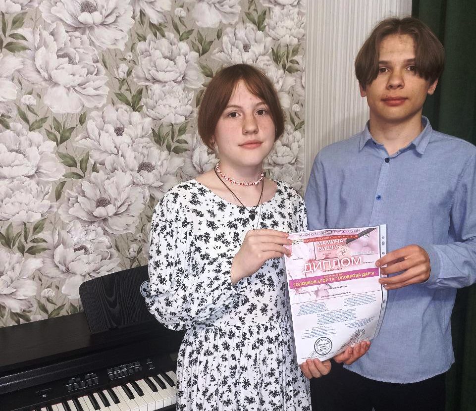 Фортепіанний дует Камʼянської школи мистецтв № 2 у складі брата й сестри Єгора та Дарʼї Головкових (керівник Ксенія Зубріліна) взяв участь у третій віковій категорії в номінації "Фортепіано" та отримав диплом лауреата І премії.