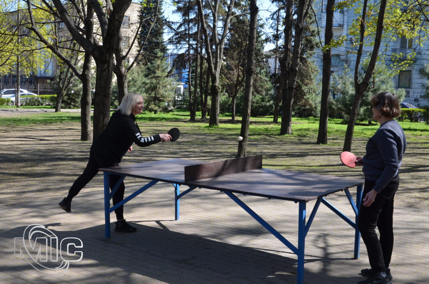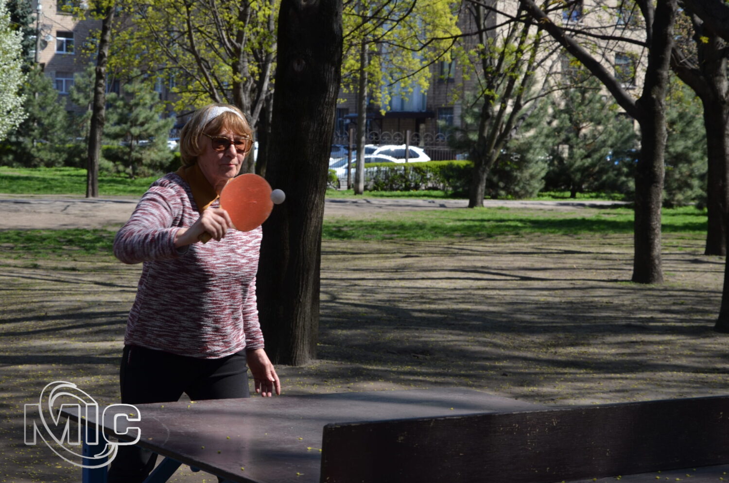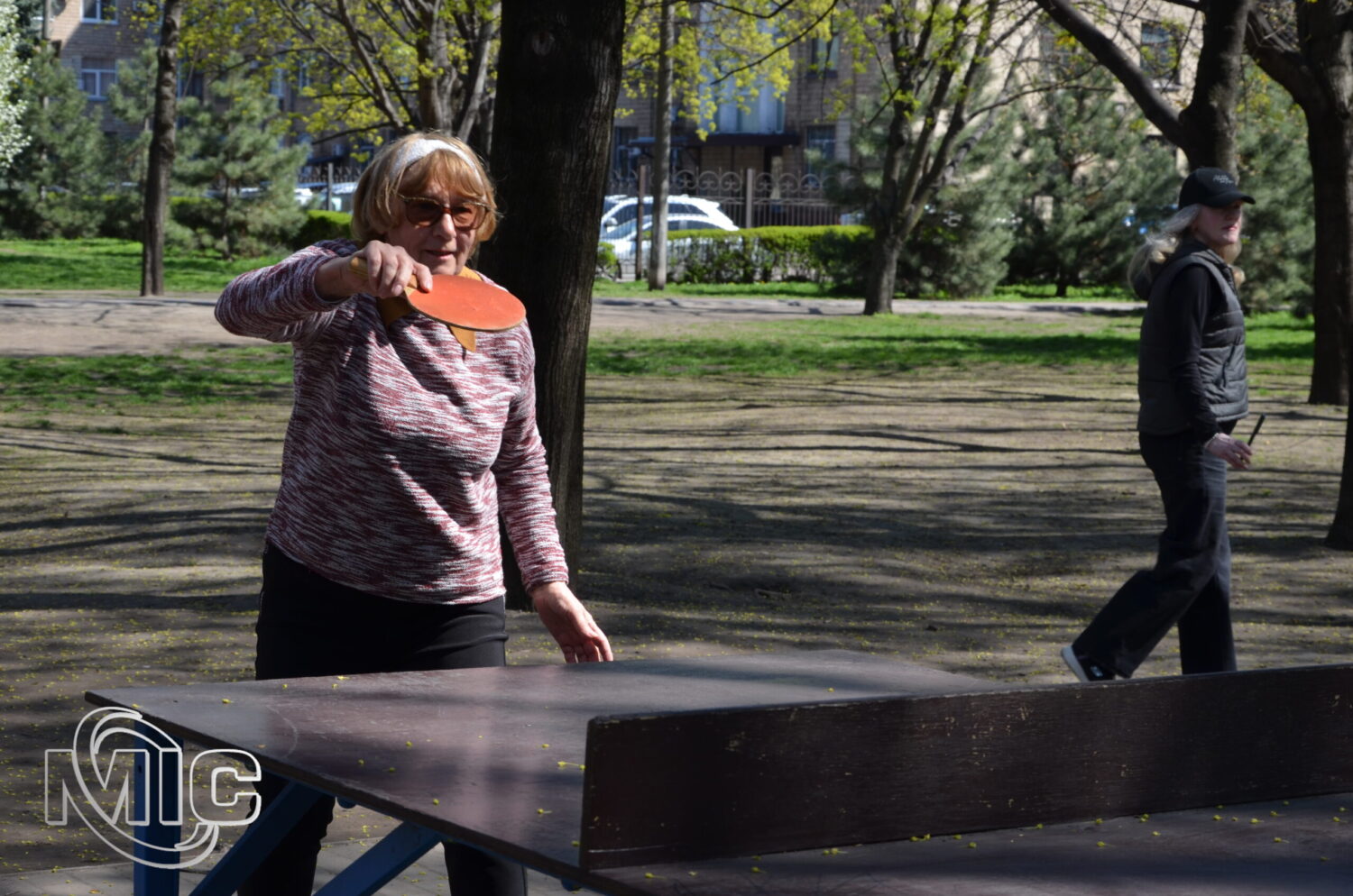 Група “Активне довголіття” продовжує свої заняття спортом у центральному міському парку Кам’янського. Сьогодні, 15 квітня, з огляду на теплу і сонячну погоду, окрім традиційної розминки та скандинавської ходьби, учасниці групи вперше у цьому сезоні взяли у руки тенісні ракетки. Звісно, що після довгої перерви не все виходило з першого разу. Проте жінки досить швидко згадали колишні навички в настільний теніс і з кожною хвилиною більш впевнено тримали ракетки й відбивали м’ячі.