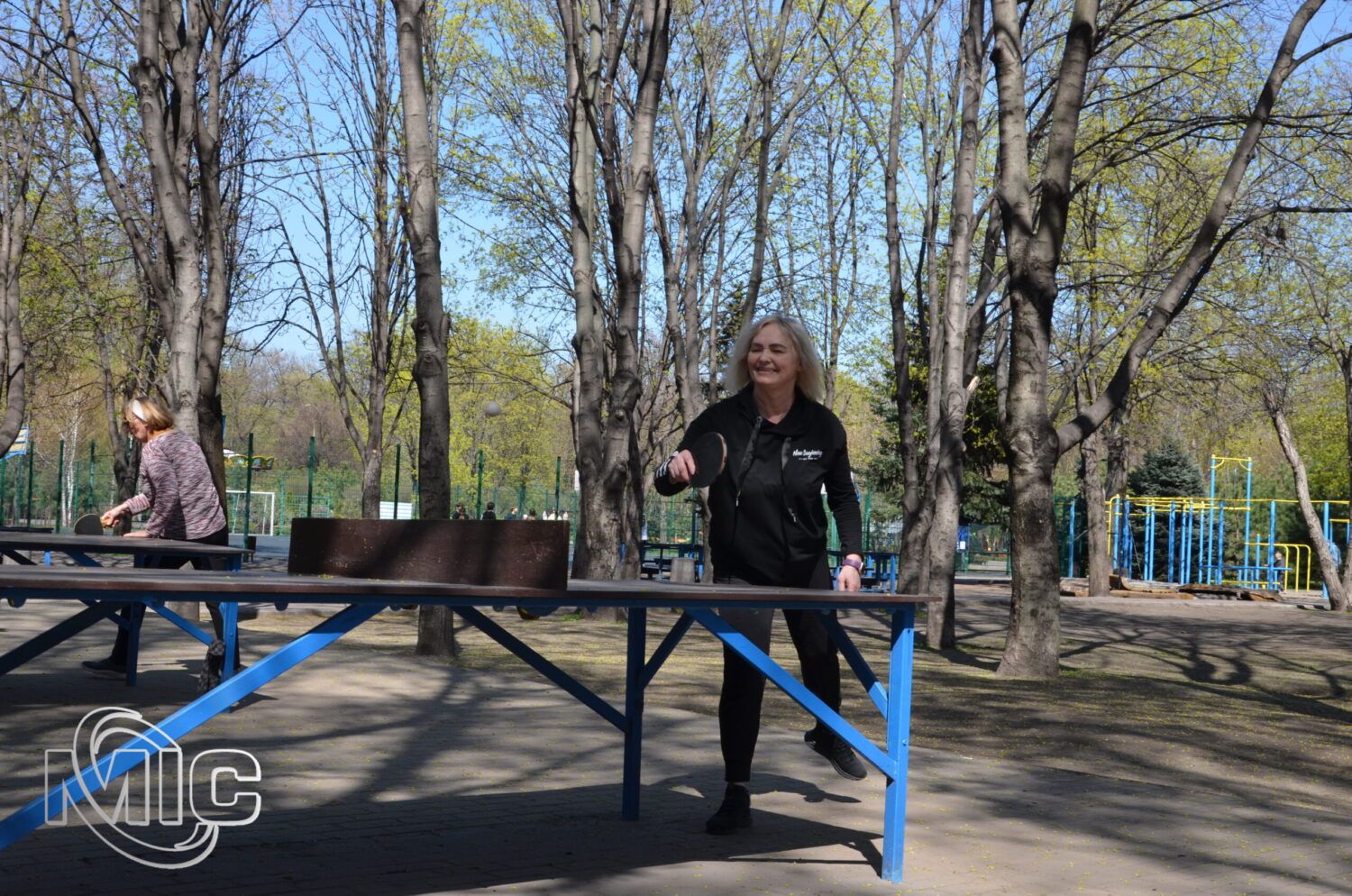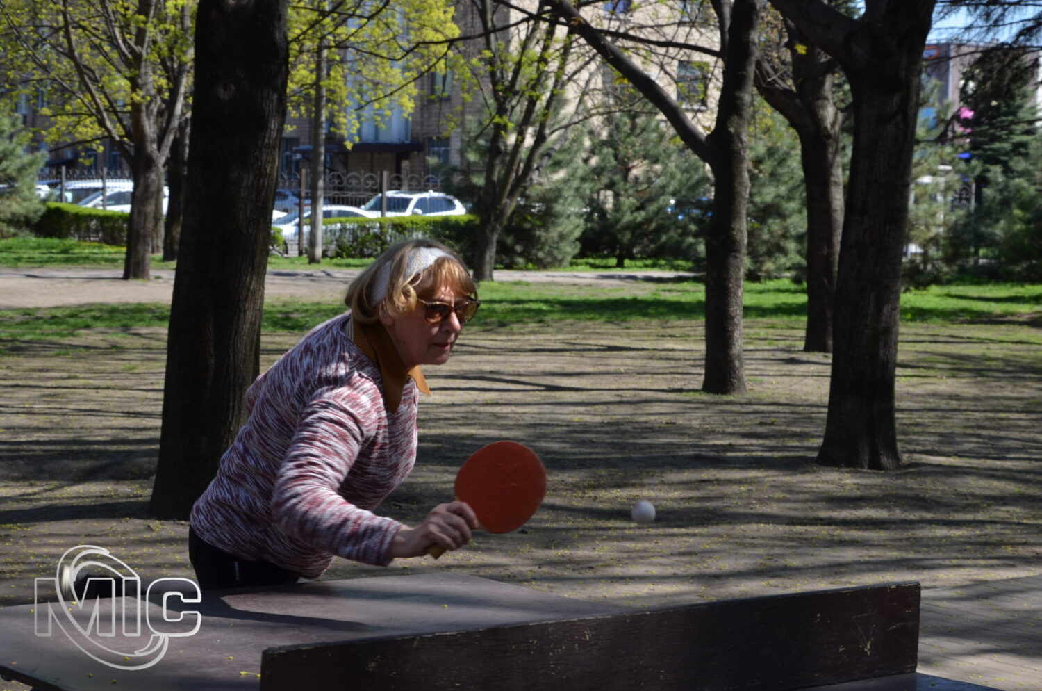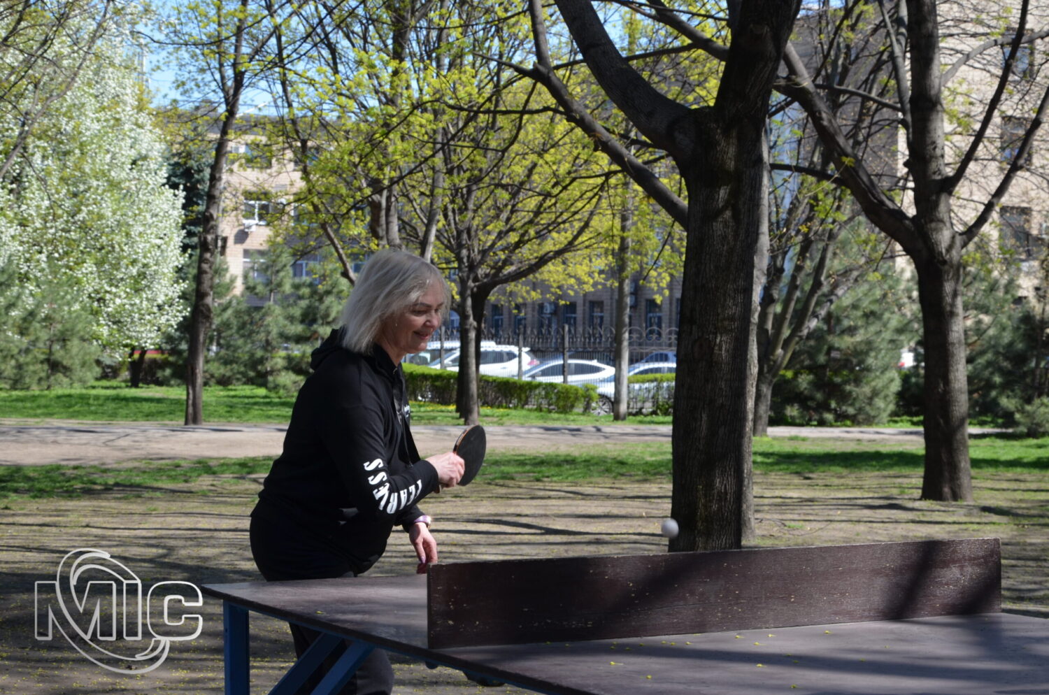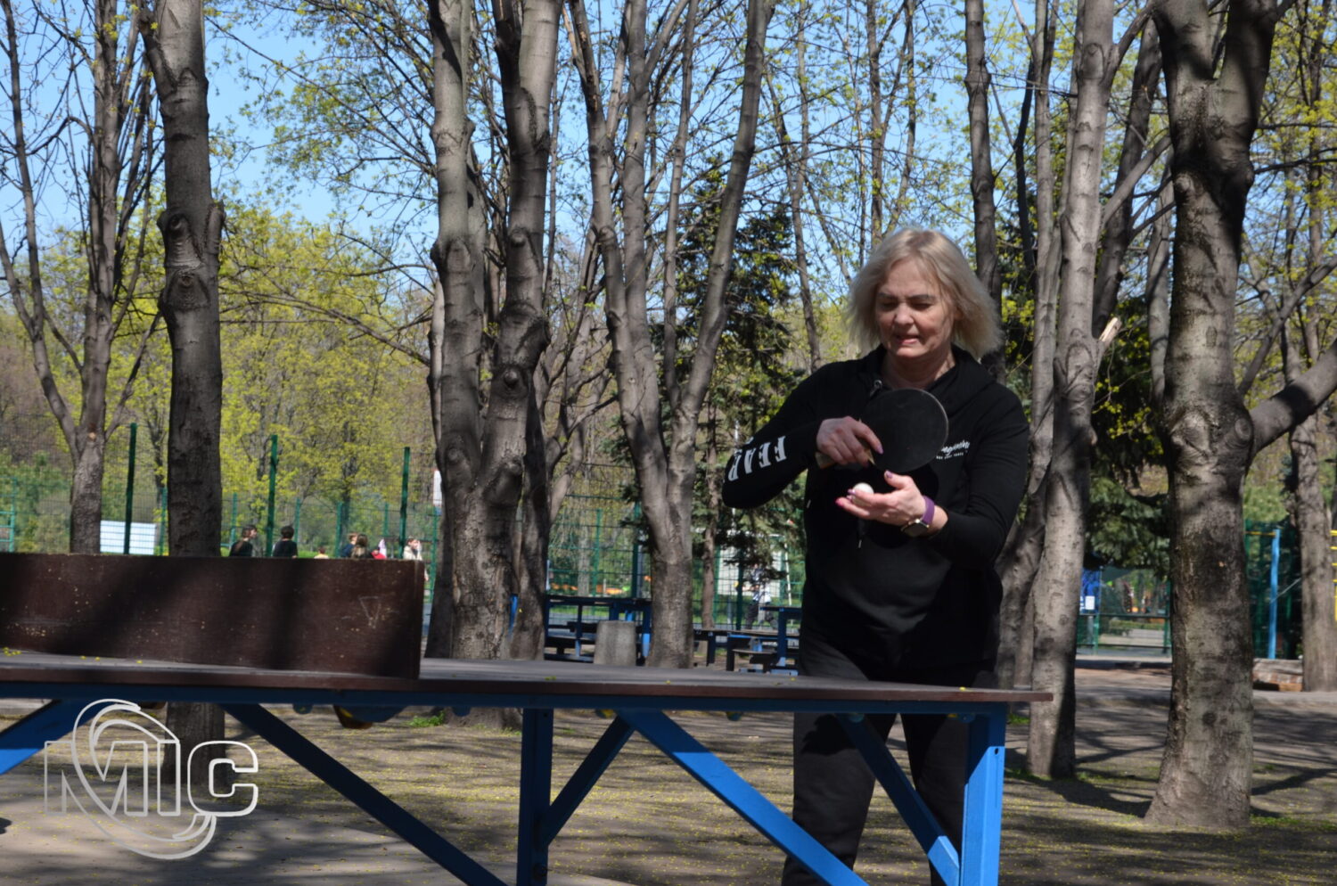 Група “Активне довголіття” продовжує свої заняття спортом у центральному міському парку Кам’янського. Сьогодні, 15 квітня, з огляду на теплу і сонячну погоду, окрім традиційної розминки та скандинавської ходьби, учасниці групи вперше у цьому сезоні взяли у руки тенісні ракетки. Звісно, що після довгої перерви не все виходило з першого разу. Проте жінки досить швидко згадали колишні навички в настільний теніс і з кожною хвилиною більш впевнено тримали ракетки й відбивали м’ячі.