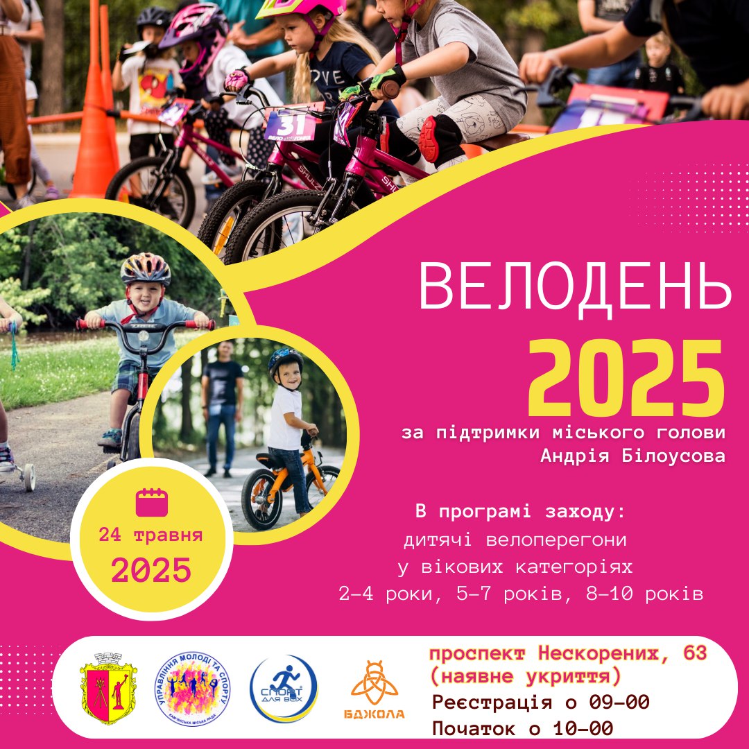 У суботу, 24 травня, у лівобережній частині Кам’янського відбудеться традиційний спортивно-масовий захід "Велодень – 2025", який цього року об’єднає юних учасників на яскравих та динамічних дитячих велоперегонах.