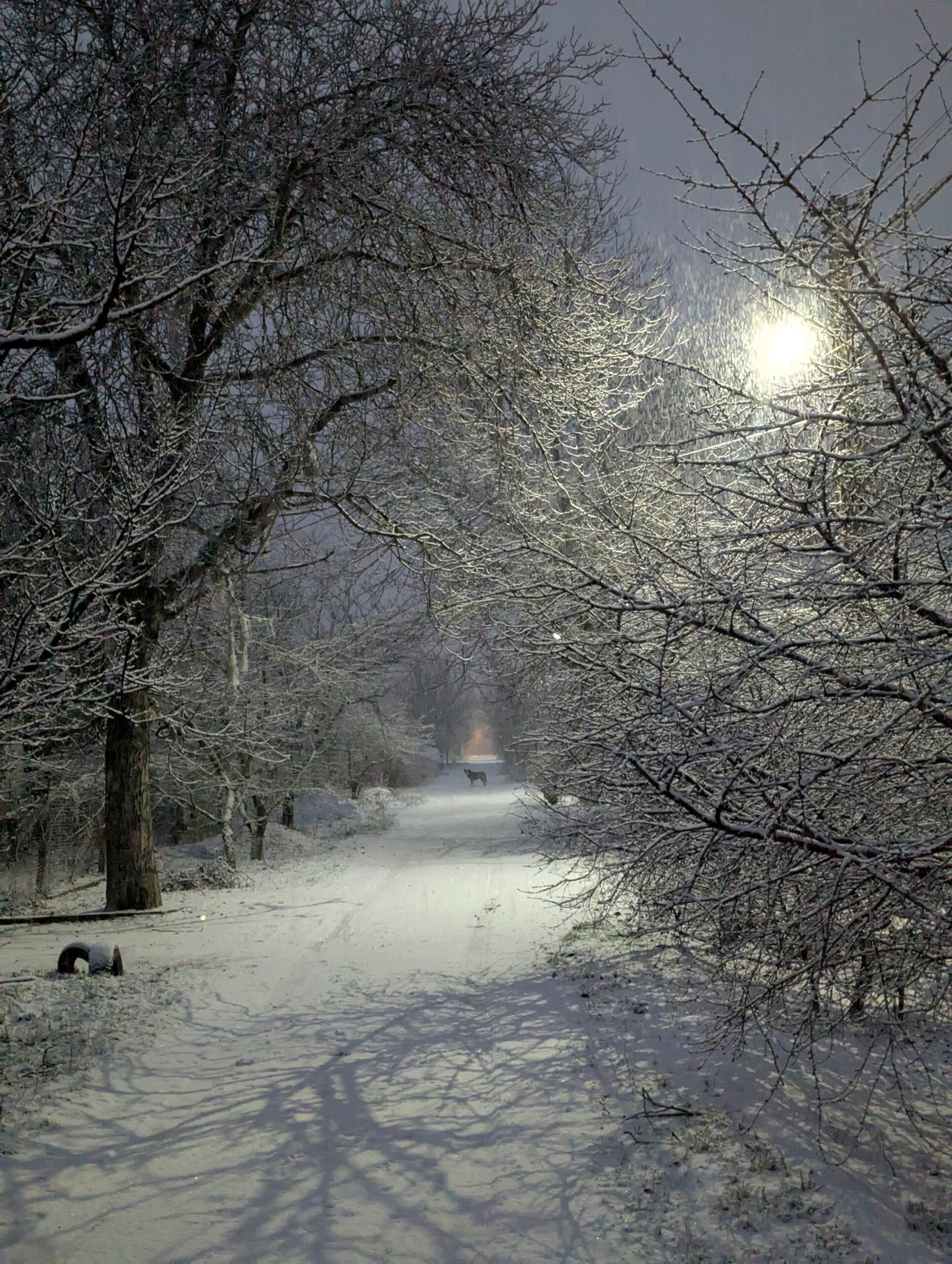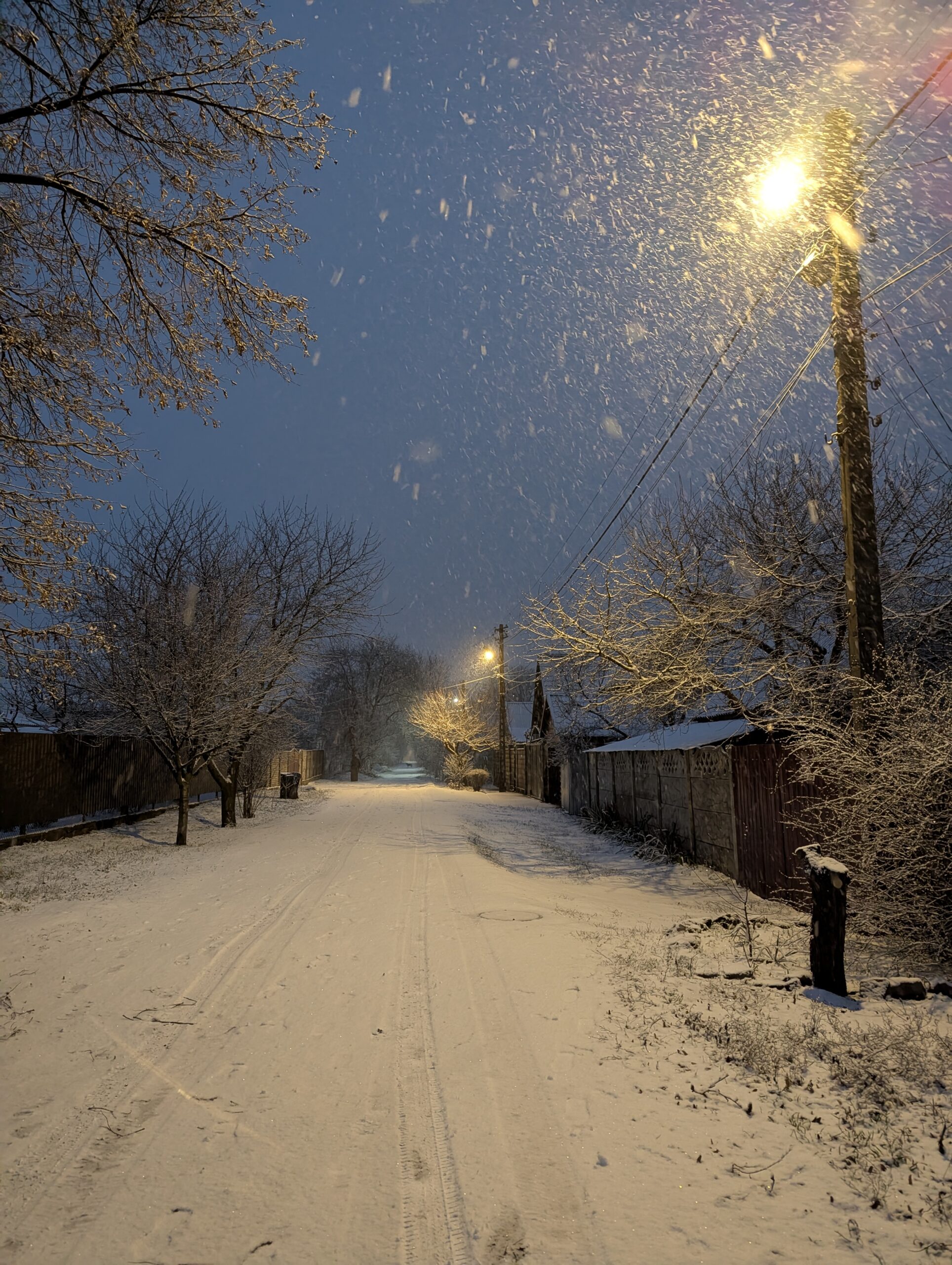 Ближче до вечора вітер нарешті вщух, а снігопад припинився, залишивши по собі тишу та ідеально білі пейзажі. Це саме той момент, коли варто відкласти справи та просто насолодитися моментом: засніженими вулицями, що сяють під світлом ліхтарів, та особливим затишком рідного міста.