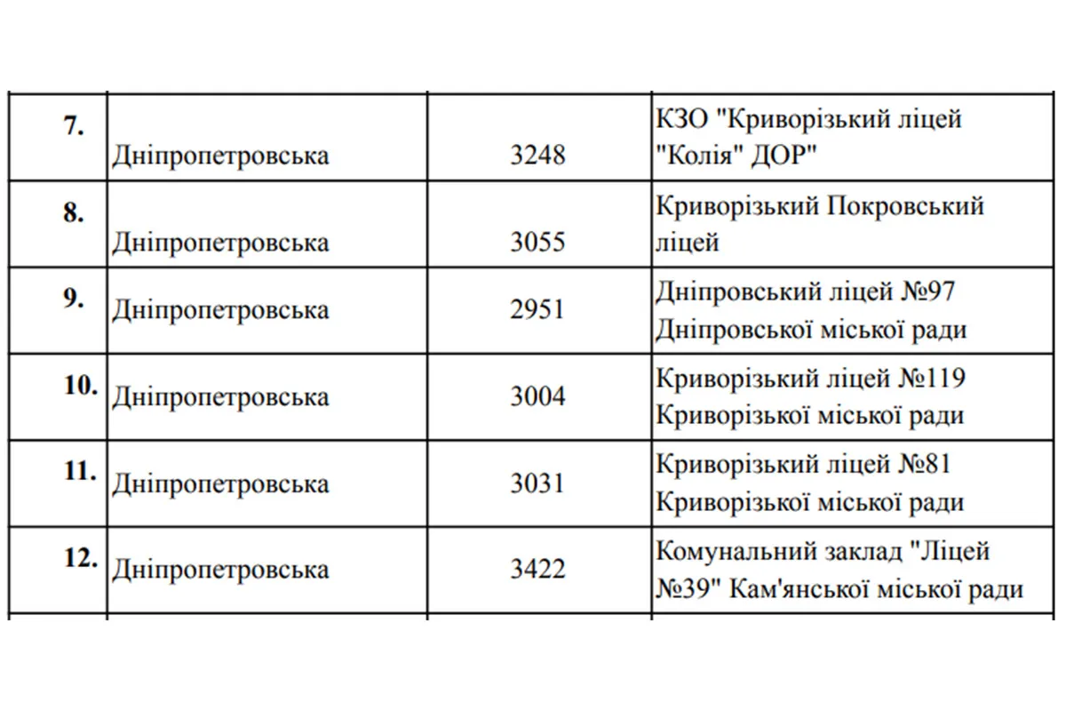 Загалом до проєкту відібрали заклади з 23 областей України та міста Києва. Це ліцеї різної потужності — від сільських до великих міських шкіл. У Дніпропетровській області статус "пілотних" отримали лише шість закладів освіти.