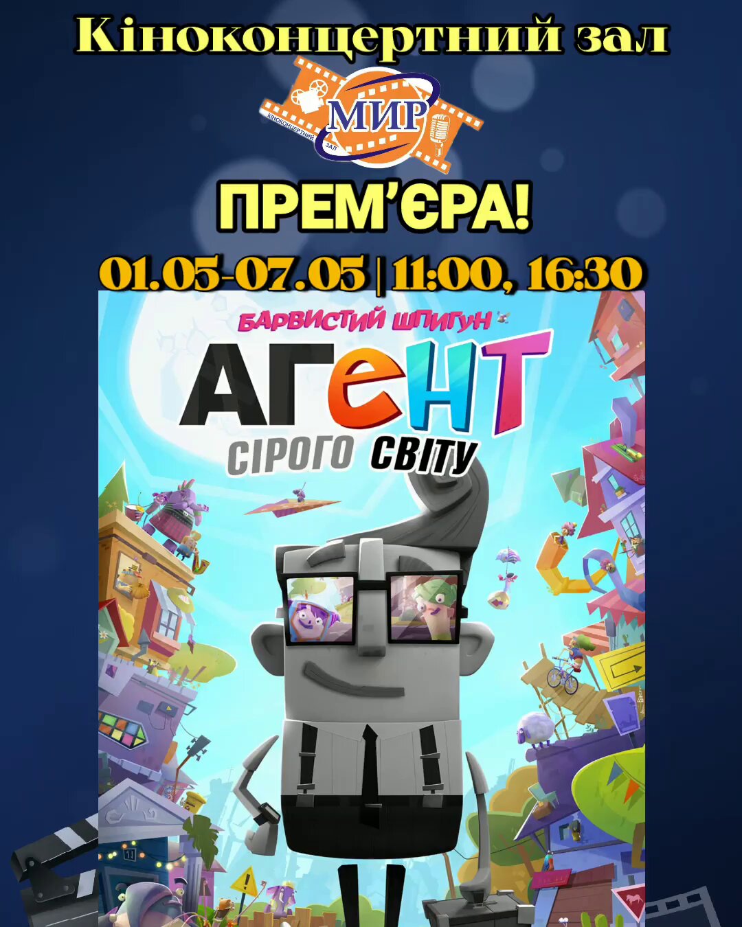 11:00 та 16:30 – ПРЕМ’ЄРА сімейного повнометражного анімаційного фільму "Агент сірого світу".