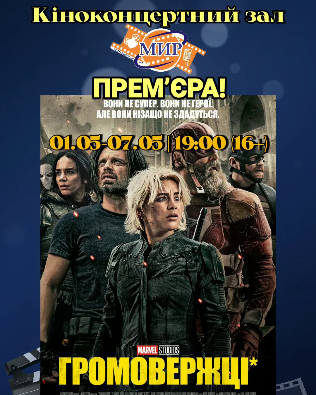 19:00 – ПРЕМ’ЄРА фантастичного екшна "Громовержці*" у форматі 3D.