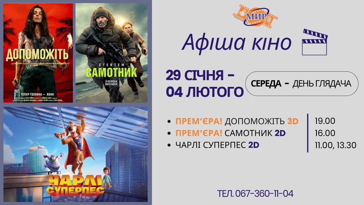 Зима в Кам’янському видалася морозною, але в залах кінотеатру "МИР" з 29 січня по 4 лютого буде справді спекотно! Цього тижня на великому екрані панує суміш напруженого виживання, суворого чоловічого екшну та сімейного затишку.