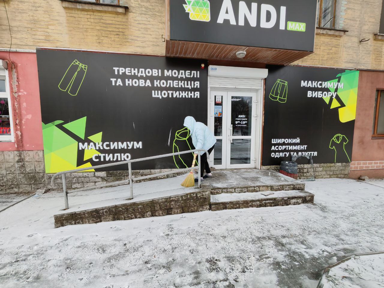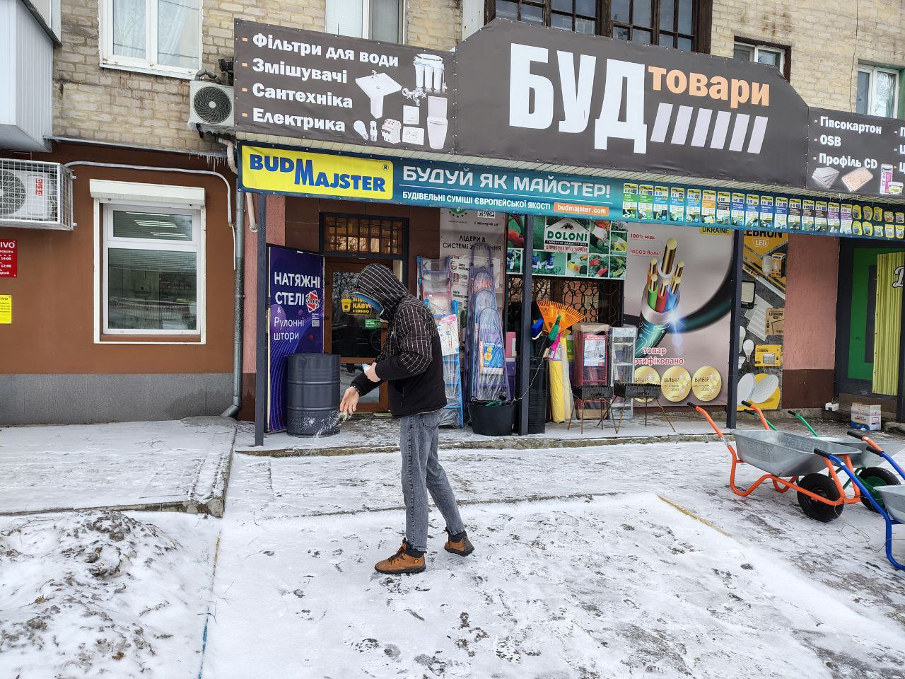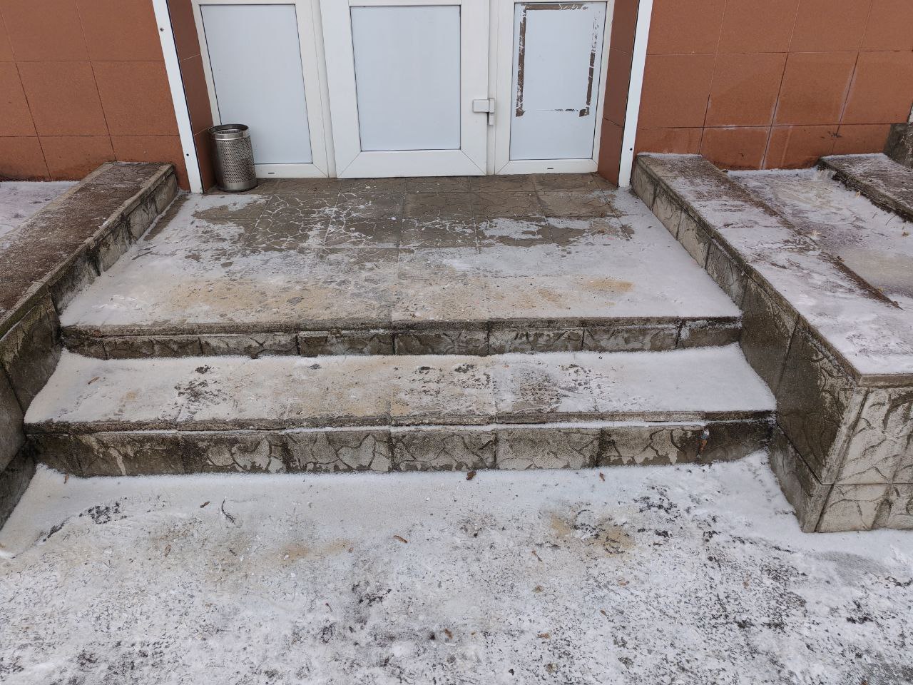 обробляють сходи й доріжки протиожеледними сумішами;
