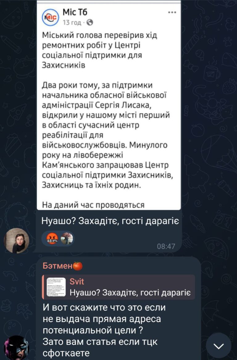 проросійський телеграм канал видає фейкові новини по Кам’янському