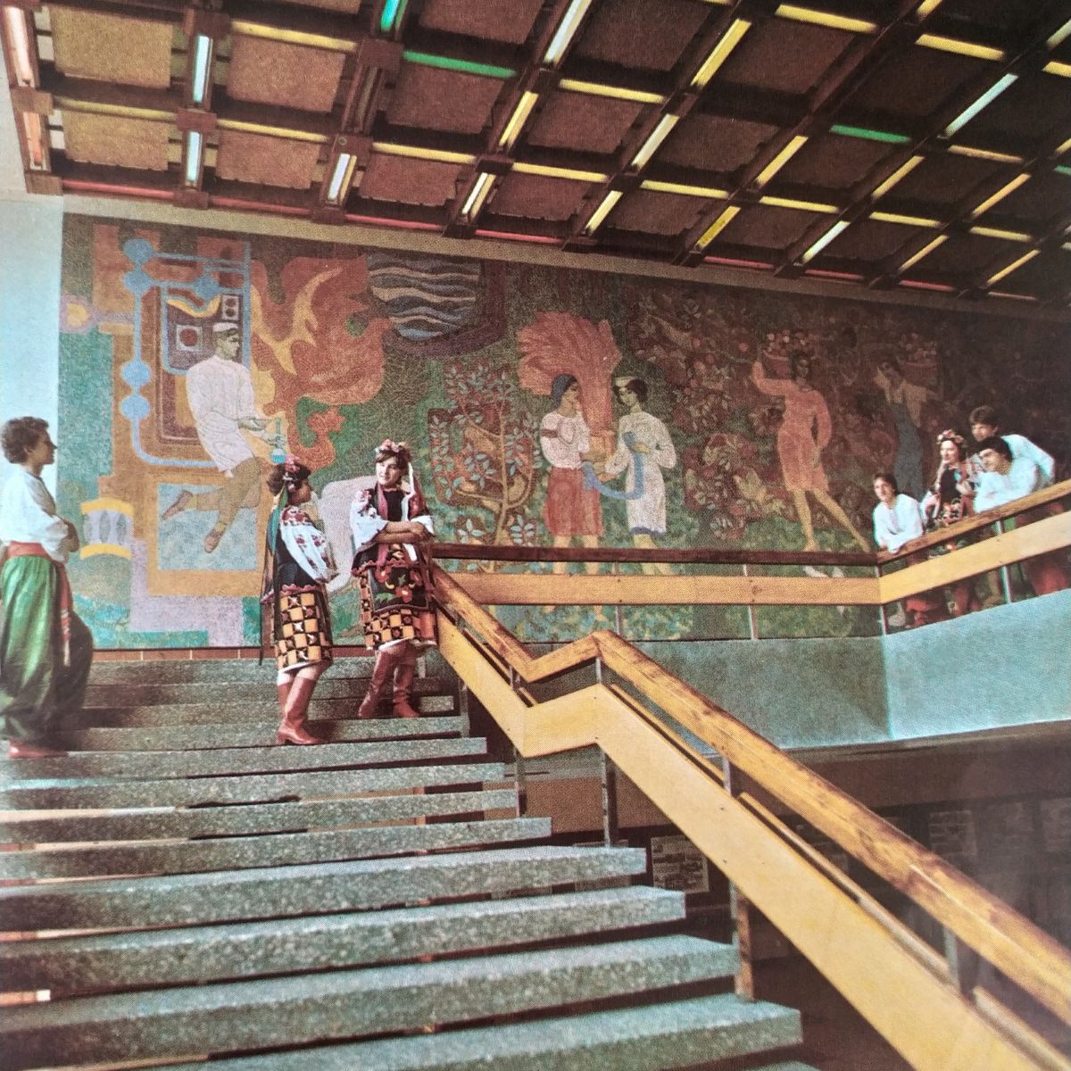 "5 грудня 1970 року наш палац гостинно відчинив двері для відвідувачів. Директор азотно-тукового заводу (тепер АТ “ДніпроАзот” — прим. ред.) Євген Іванович Добровольський вирішив збудувати такий шикарний палац, який ми зараз маємо. Він побудований за типовим проєктом. Таких палаців чимало в Україні: є і в Черкасах, і в Кременчуці, і в Дніпрі. Але наш дуже відрізняється від них розкішним екстер’єром та внутрішнім оздобленням. А основною прикрасою цього інтер’єру є полотна відомих українських художників-монументалістів Валерія Ламаха та Ернеста Коткова", — розказує Лариса Орлянська.
