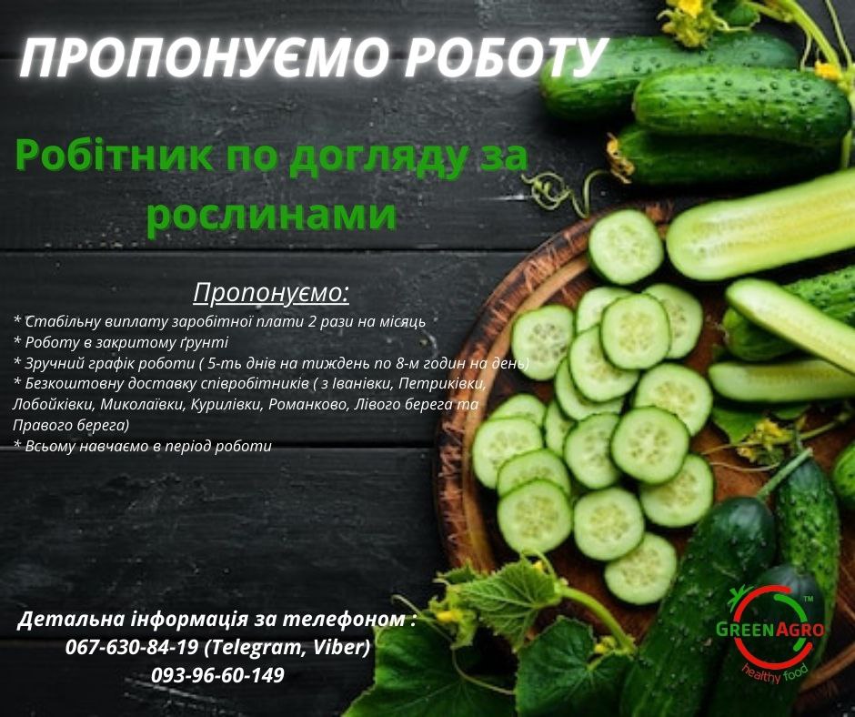 Тепличний комбінат "Дніпровський" запрошує на роботу