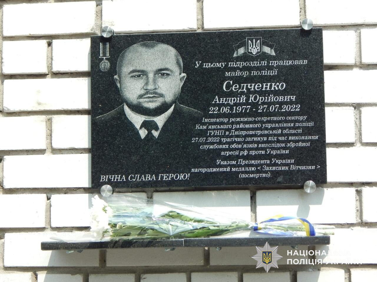 У Кам’янському районі відкрили меморіальні поліцейським Андрію Седченко та Максиму Пошедіну, які віддали життя, захищаючи Україну від російської агресії.