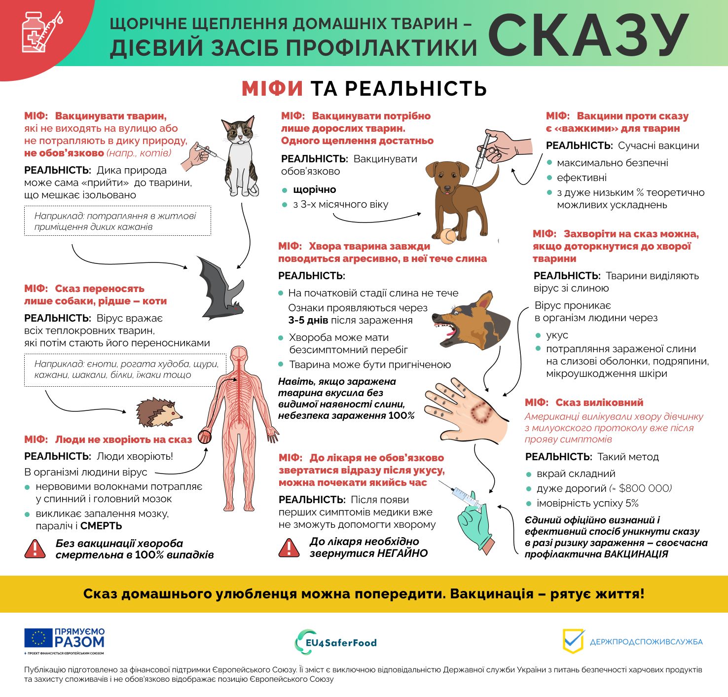 Нагадуємо, що сказ – це гостра інфекційна хвороба з групи вірусних зоонозів, розвивається внаслідок укусу або ослинення хворою твариною, характеризується важкими ураженнями центральної нервової системи і закінчується смертельним результатом. Основним і сталим джерелом інфекції для людини є собаки та коти, особливо бродячі, а з диких тварин – лисиці, вовки. Можливе зараження людини і від інших тварин – корів, овець, кіз, свиней, коней, щурів, їжаків, кажанів та ін.