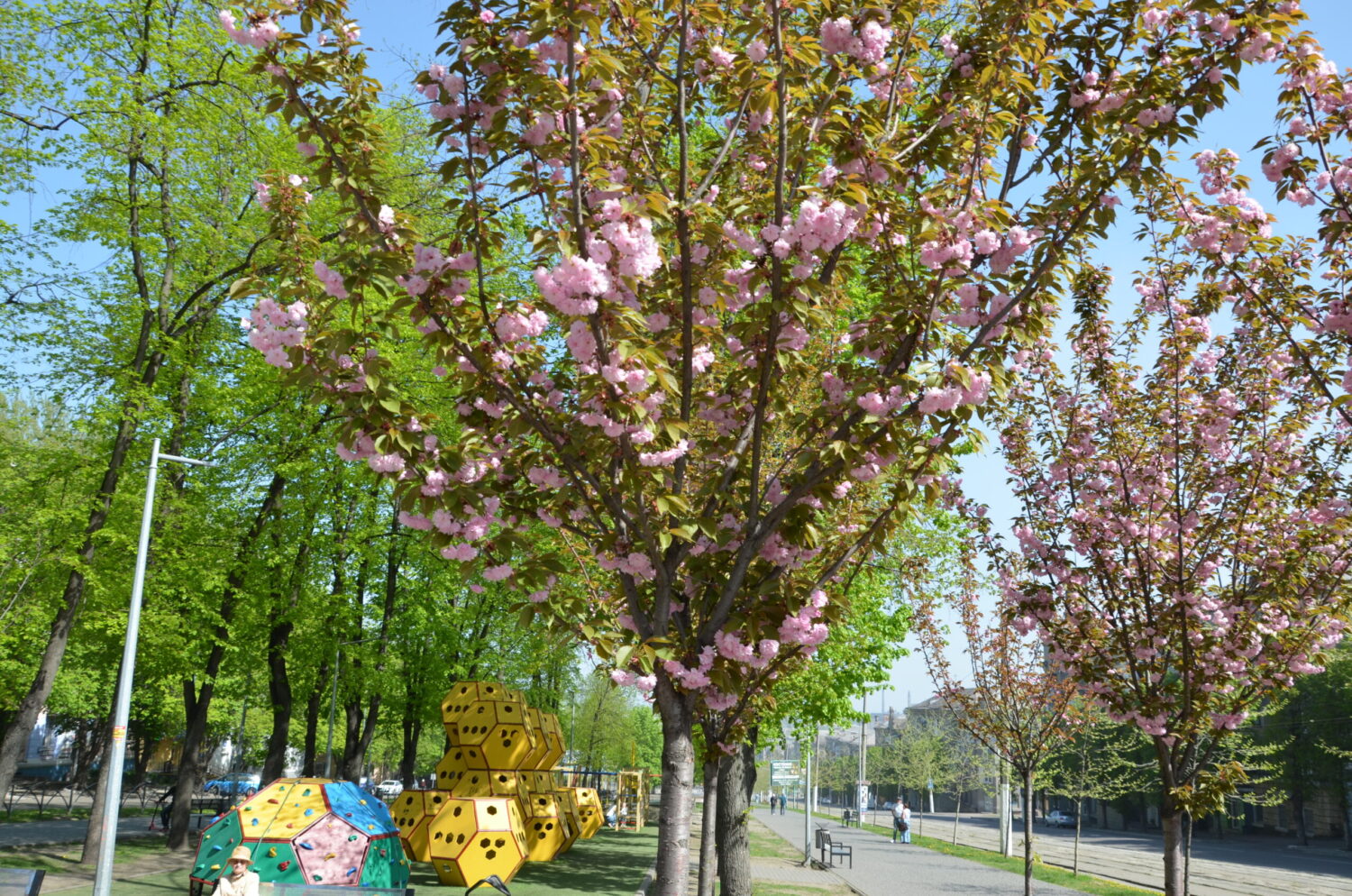 У таку казку можна "зануритись" і у Кам’янському. Саме зараз сакури квітнуть у сквері по проспекту Свободи та у Центральному міському парку міста Кам’янське. Якщо ви бажаєте насолодитися виглядом цих неповторних і ніжних квітів, покваптесь, бо цвітіння сакури досить короткочасне і триває всього від 7 до 10 днів. Достатньо кількох сильних поривів вітру або дощу і ці ніжні квіти одразу опадають на землю.