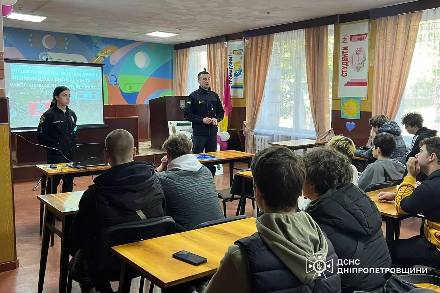 20 квітня представники ДСНС та Національної поліції відвідали один із місцевих коледжів Кам’янського. Метою зустрічі стало роз’яснення правил мінної безпеки та алгоритмів дій під час надзвичайних ситуацій воєнного стану.