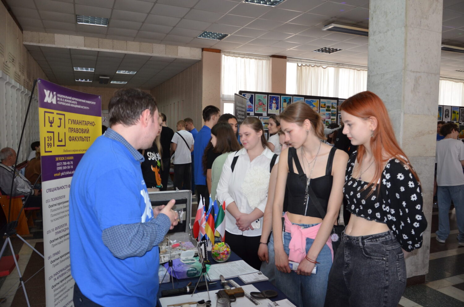 На цьому заході були присутні учні випускних класів навчальних закладів Кам’янського, які як раз зараз обирають вищі навчальні заклади, до яких планують подати документи на вступ.