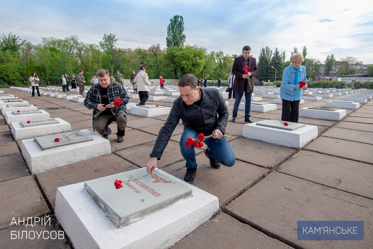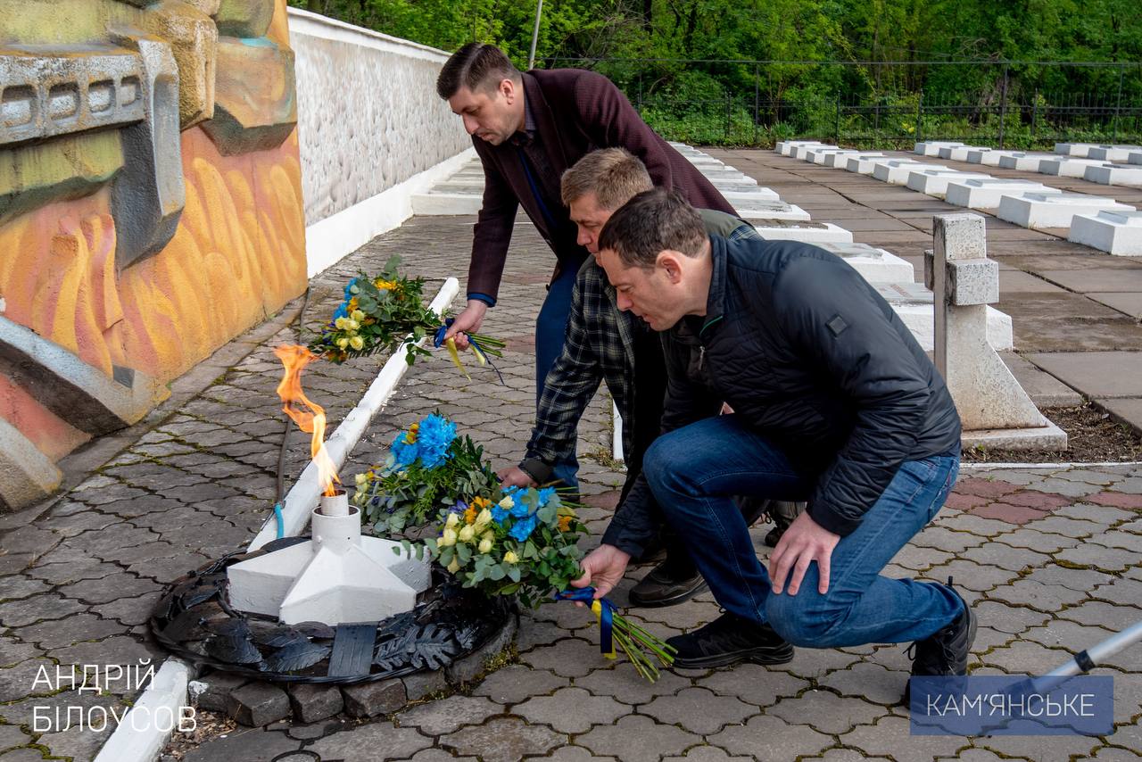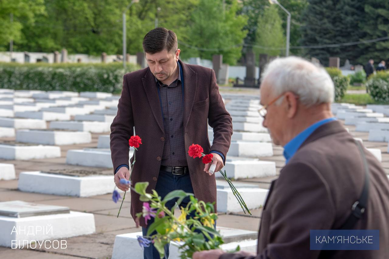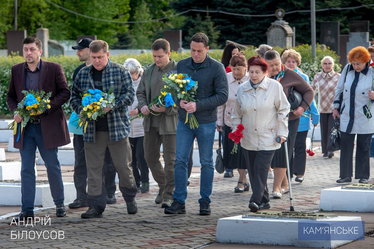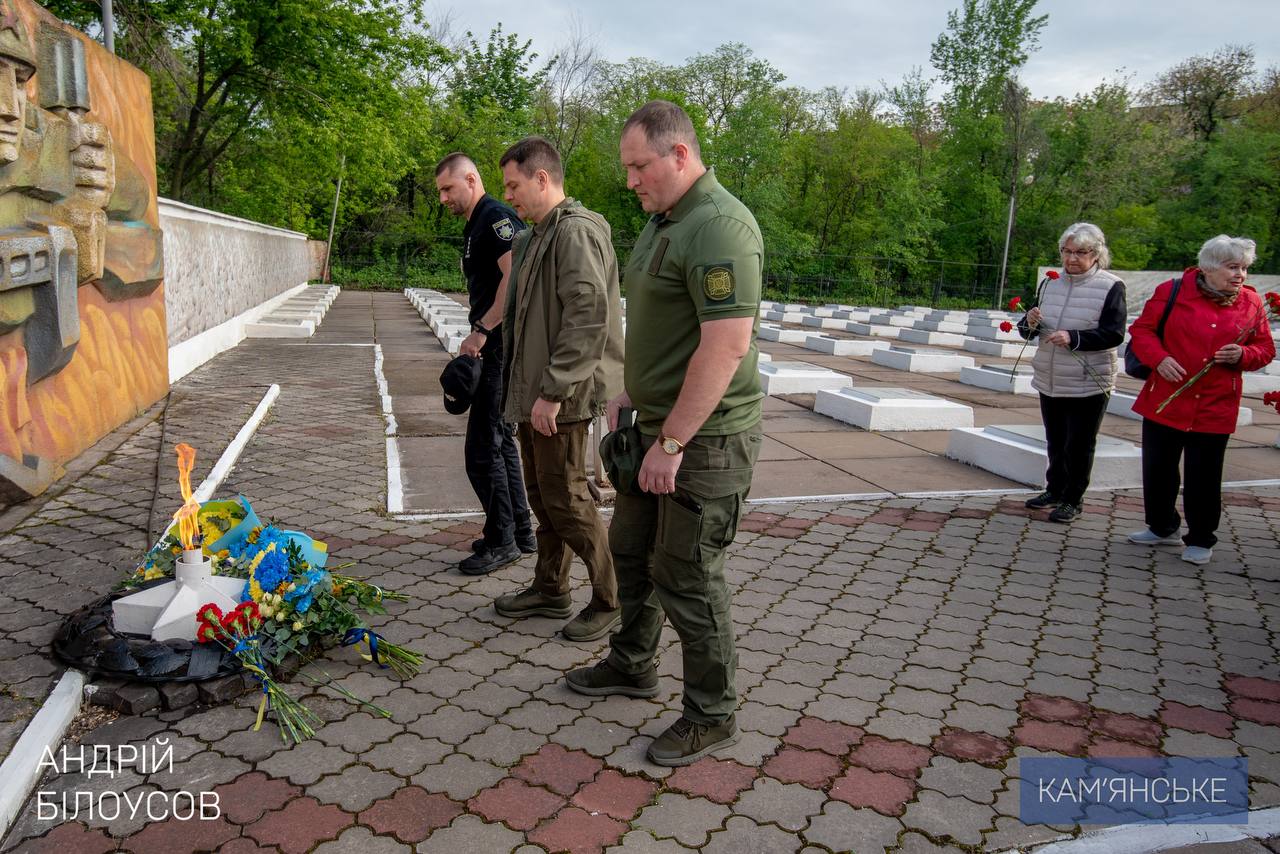 Кам’янський міський голова Андрій Білоусов разом з начальником районної військової адміністрації Олегом Гапічем, головою районної ради Максимом Чехутою, керівниками правоохоронних органів та представниками ветеранських організацій вшанували пам’ять полеглих – поклали квіти на військовому кладовищі по вулиці Сергія Слісаренка.