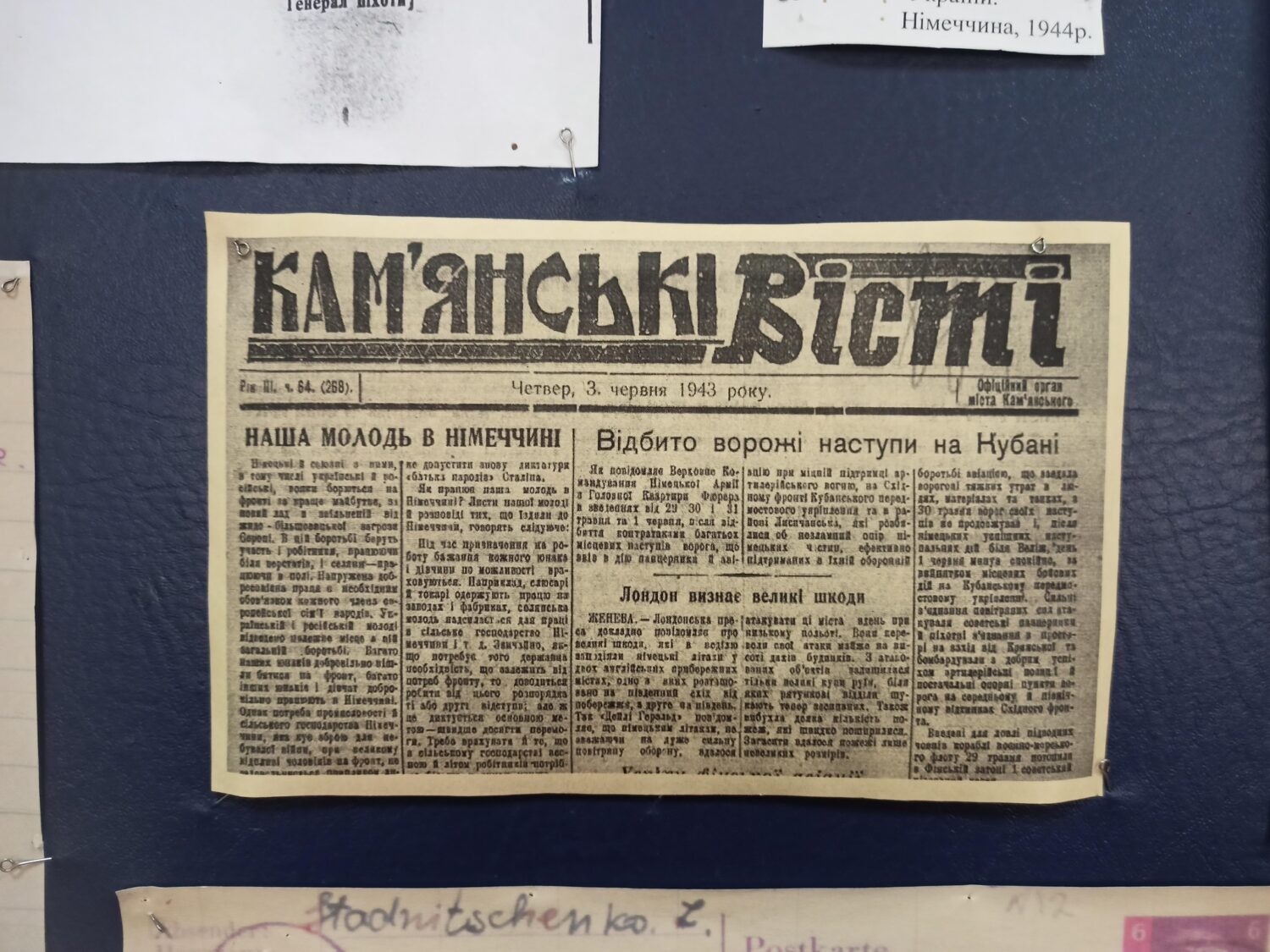 В архіві Кам’янського оновили документальну виставку, присвячену подіям Другої світової