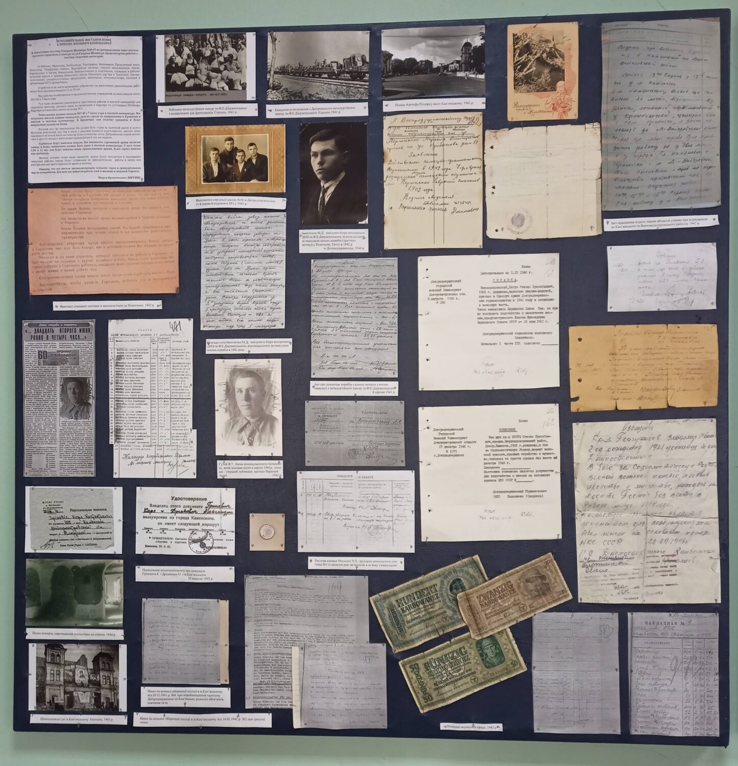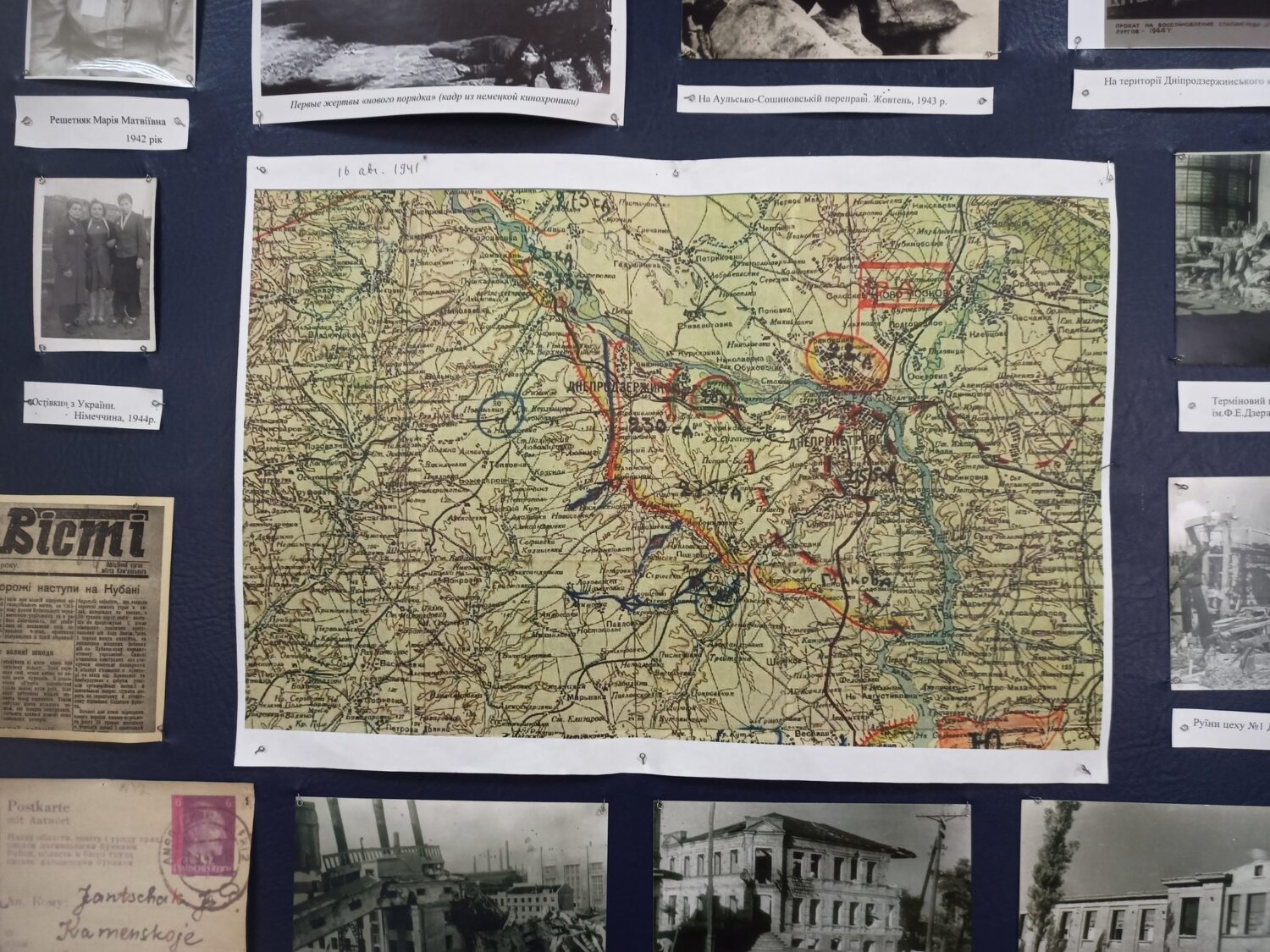 На основі архівних матеріалів, фотодокументів та спогадів тут представлено маловідомі сторінки історії Кам’янського (колишнього Дніпродзержинська), зокрема про воєнні дії, окупацію, рух опору та повоєнну відбудову. Виставка покликана зберегти пам’ять про жертовність і героїзм, сприяти осмисленню історичного досвіду та утвердженню миру.