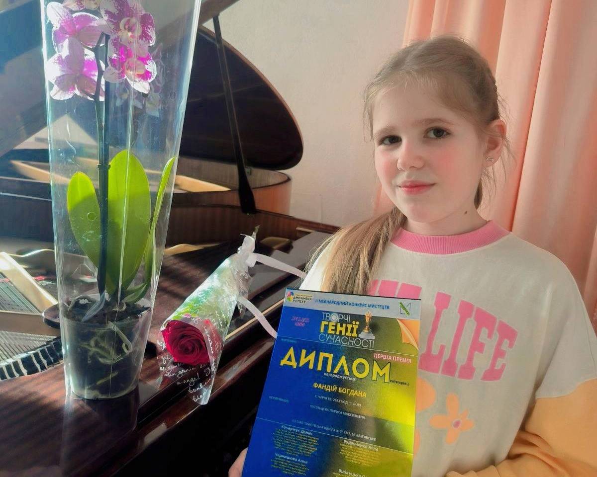 Учениця фортепіанного відділу Камʼянської школи мистецтв № 2 Богдана Фандій (викладач Путільцева Лариса Максимівна) взяла участь у номінації "Інструментальний жанр. Фортепіано" та здобула диплом І премії.