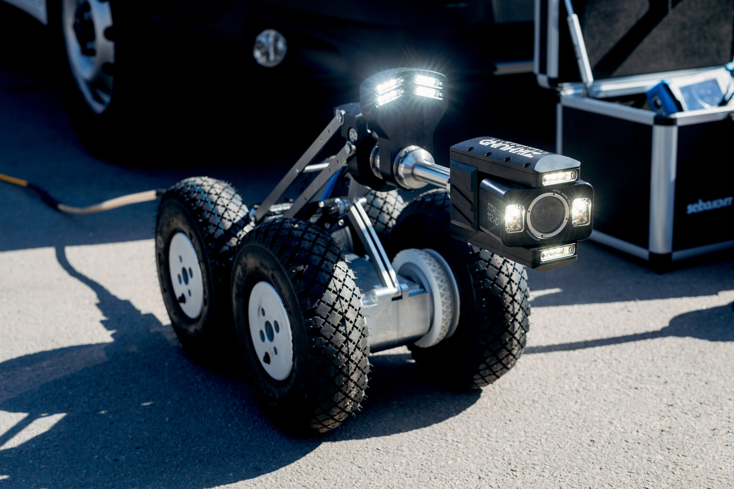 Головна особливість техніки — два роботизовані комплекси для труб різного діаметру. Камери Full HD передають зображення в режимі реального часу, що дозволяє фахівцям: