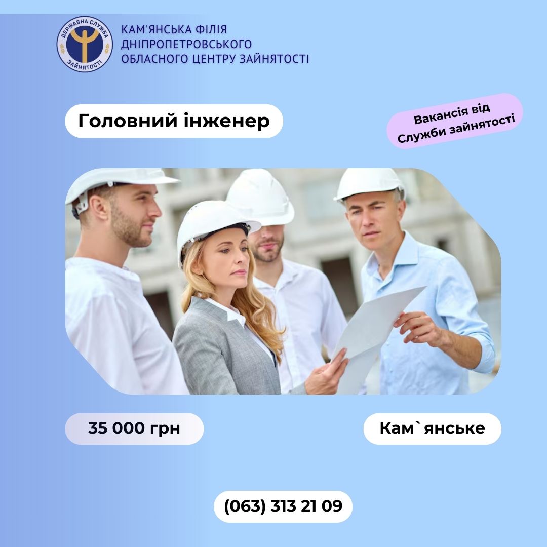 Кам’янська філія служби зайнятості пропонує вакансію головного інженера