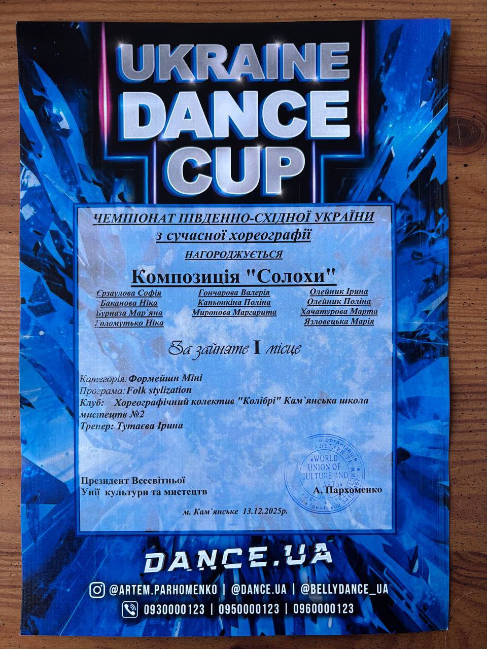 Перше місце у категорії Folk stylization здобув хореографічний колектив "Колібрі" (учні ІІІ класу елементарного підрівня) з композицією "Солохи", що гармонійно поєднала народні мотиви та елементи сучасного танцю.