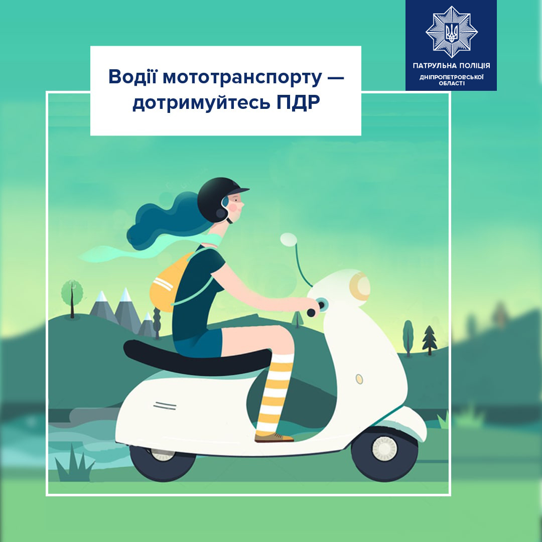 • Пам’ятайте, що керувати двоколісним транспортом дозволяється з 16 років за наявності водійського посвідчення та документів.