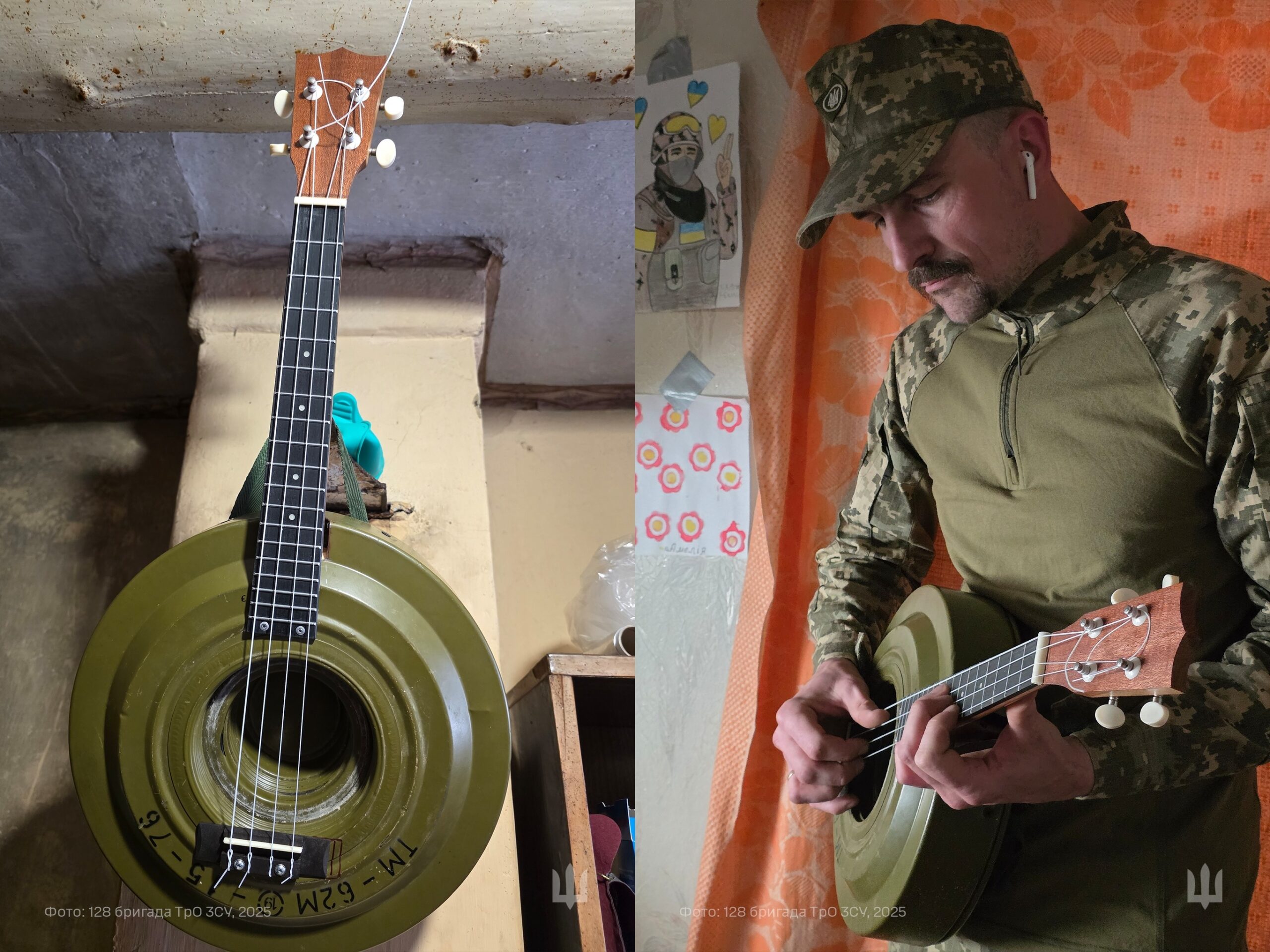 Але як звучить укулеле там, де замість морського бризу — запах пороху? В 128-й окремій бригаді ТрО "Дике Поле" цей інструмент отримав справжнє "фронтове" переродження. Тут з’явилося унікальне укулеле, яке неможливо сплутати з жодним іншим у світі: замість звичного дерева його корпусом стала радянська протитанкова міна ТМ-62М.