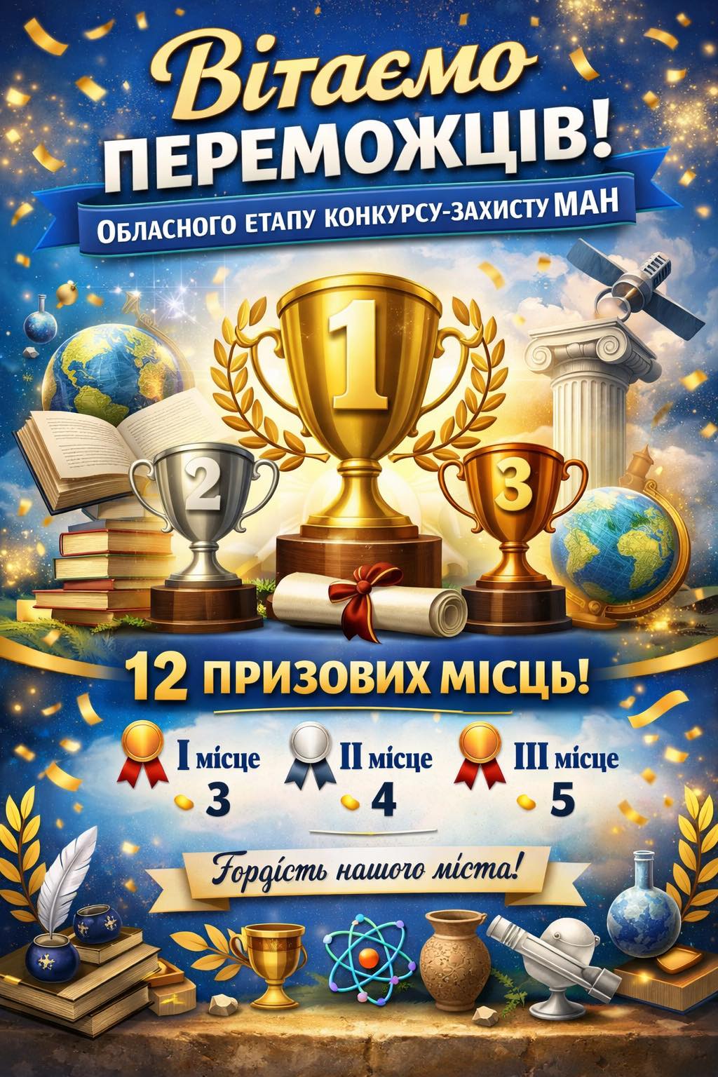 Міська громада делегувала 32 учасники, які презентували дослідження у сферах історії, філософії та наук про Землю. Результат виявився гідним: 12 школярів здобули призові місця, виборовши три дипломи першого ступеня, чотири — другого та п’ять — третього.