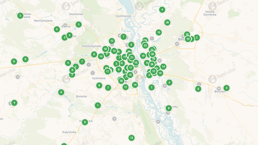 У Києві ситуація теж значно покращилася, всі райони столиці у зеленій зоні, перевищень не зафіксовано.