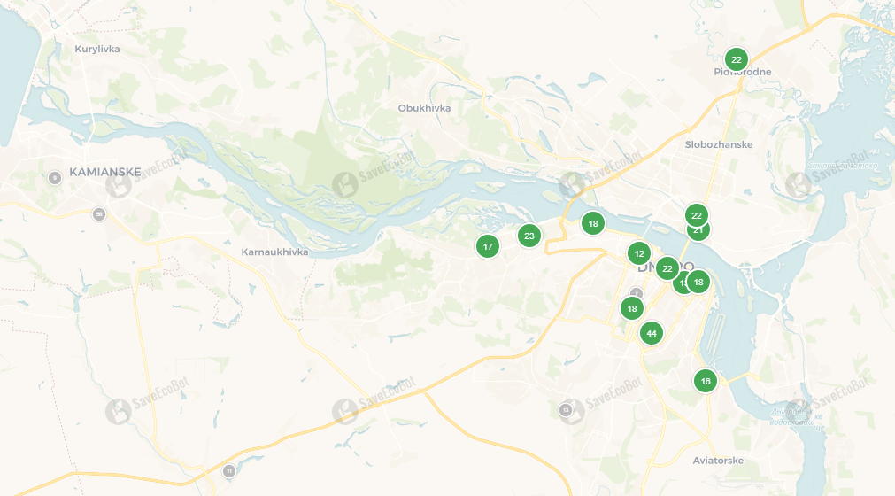Сьогодні, 13 червня 2025 року, за даними сервісу SaveEcoBot, у Кам’янському та Дніпрі чисте повітря, жодних перевищень.