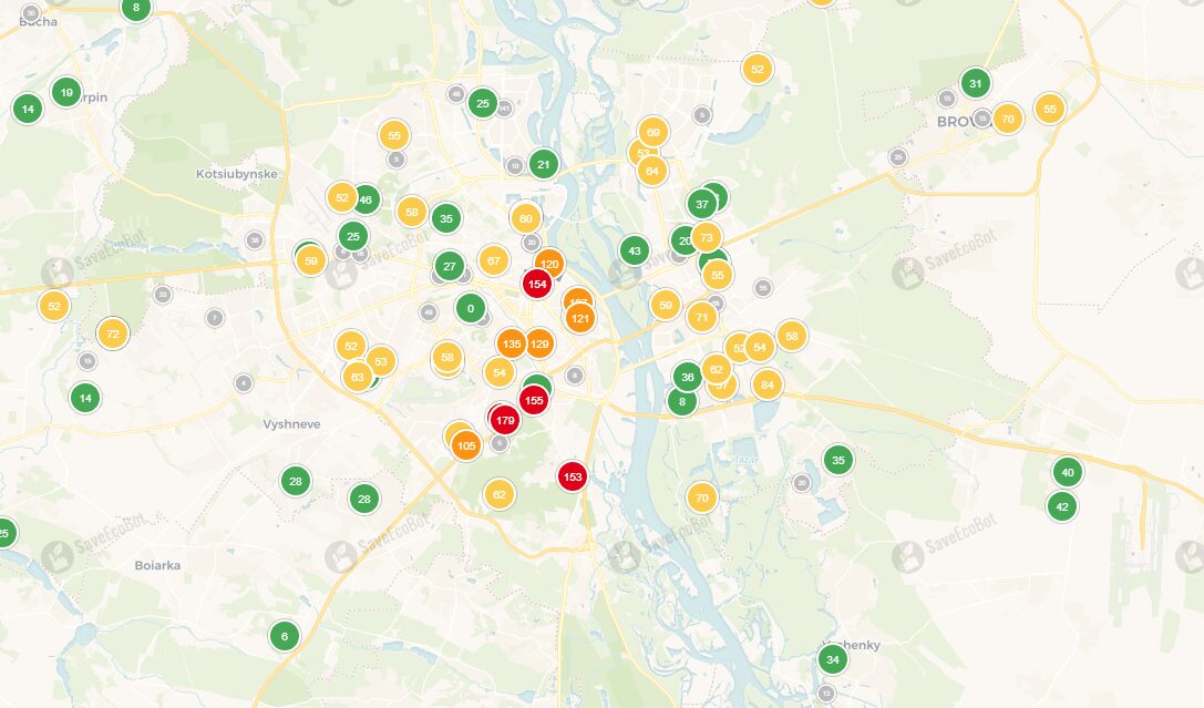 А ось у Києві внаслідок масованої атаки окупантів ситуація дуже небезпечна. По всій столиці вирують масштабні пожежі, через що якість повітря значно погіршилася. Майже  все місто у жовтій зоні, а в епіцентрах пожеж фіксуються перевищення помаранчового та червоного рівнів. Якщо у вас проблеми з дихальними шляхами чи підвищена чутливість, обов’язково використовуйте респіратори чи залишайтеся вдома, зачинивши вікна.
