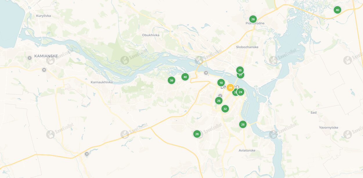 Сьогодні, 16 червня 2025 року, за даними сервісу SaveEcoBot, у Кам’янському та Дніпрі чисте повітря. Лише в одному з районів Дніпра мінімальне перевищення, але воно не становить загрози для здоров’я.